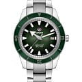 Премиальная модель обладает винтажным характером, зелёный циферблат обращает наше внимание на оригинальные стрелки в виде меча и стрелы. Часы обладают высокими показателями водонепроницаемости - сохранение герметичности до 30 бар, что стало возможным благодаря задней крышке и заводной головке с винтовыми фиксаторами. Автоподзавод. Швейцарский калибр ETA C07.611 с 80-часовым резервом хода. Антибликовая обработка сапфирового стекла. Корпус из хирургической стали 316L, безельБезельВнешний ободок, закрепляющий стекло. В спортивных часах так называется поворотное кольцо с делениями на циферблате, выполняет роль таймера – замеряет отрезки времени на шкале. Неподвижный безель – элемент декора. Однонаправленно вращающийся безель на дайверских часах позволяет фиксировать моменты погружения и выныривания на поверхность. из высокотехнологичной керамикиВысокотехнологичная керамикаИнновационный запатентованный Rado материал с гладкой или матовой поверхностью. Керамика за счёт кристаллической структуры обладает повышенной устойчивостью от возникновения царапин. Материал способен принимать температуру тела человека, обеспечивая невероятный комфорт при ношении.. Прочный стальной браслет. Отображение числа. Диаметр корпуса: 42 мм.