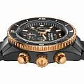 Мужские механические часы с автоподзаводом Rado Captain Cook — это вершина инженерной мысли и инноваций в материаловедении. Корпус диаметром 43 мм и толщиной 16,2 мм выполнен из цельного блока высокотехнологичной плазменной керамикиВысокотехнологичная плазменная керамикаИнновационный материал, технология запатентована. Выплавление керамики осуществляется в печи при 20 000 °C, белоснежный материал под воздействием ультравысокой температуры приобретает уникальный блеск, присущий металлам., созданной в экстремальных условиях — при температуре 20 000 °C, что изменило её молекулярную структуру и придало уникальное металлическое покрытие. БезельБезельВнешний ободок, закрепляющий стекло. В спортивных часах так называется поворотное кольцо с делениями на циферблате, выполняет роль таймера – замеряет отрезки времени на шкале. Неподвижный безель – элемент декора. Однонаправленно вращающийся безель на дайверских часах позволяет фиксировать моменты погружения и выныривания на поверхность. — вращающийся, стальной, с инкрустированным кольцом из чёрной керамики и метками с белым люминесцентным покрытиемЛюминесцентное покрытиеПозволяет считывать показания времени в темноте. Производители наносят на стрелки, часовые индексы, безель или поверхность циферблата светонакопительный состав, дающий холодное свечение. Super-Luminova®. Циферблат чёрного цвета оформлен тремя субциферблатами: 12-часовой, 30-минутный и малые секунды. Окошко даты расположено в положении 6 часов. Циферблат защищён сапфировым стекломСапфировое стеклоПрочный и надёжный материал из кристалла сапфира синтетического происхождения, характеризующийся особой твёрдостью и устойчивостью к царапинам и повреждениям. с антибликовым покрытиемАнтибликовое покрытиеСлой оксида металла в 0,13-0,3 микрон, благодаря которому стекло часов не бликует и не отражает свет. Антибликовое покрытие уменьшает отражение света в 10 раз, обеспечивая отличную читаемость показателей циферблата. с обеих сторон, устойчивым к царапинам. Механизм — автоматический хронограф с антимагнитной пружиной Nivachron™Nivachron™Специально разработанный инновационный сплав Nivachron™ повышает устойчивость часов к воздействию магнитных полей., отрегулированный в пяти положениях. В центре циферблата — подвижной якорь на рубиновой пластине. Часы оснащены браслетом из матовой и полированной высокотехнологичной плазменной керамикиВысокотехнологичная плазменная керамикаИнновационный материал, технология запатентована. Выплавление керамики осуществляется в печи при 20 000 °C, белоснежный материал под воздействием ультравысокой температуры приобретает уникальный блеск, присущий металлам. с трёхсекционной застёжкой из титана. Водонепроницаемость 300 м позволяет использовать часы для профессионального плавания и дайвинга. Идеальный выбор для тех, кто ценит передовые технологии, точность и смелый дизайн.