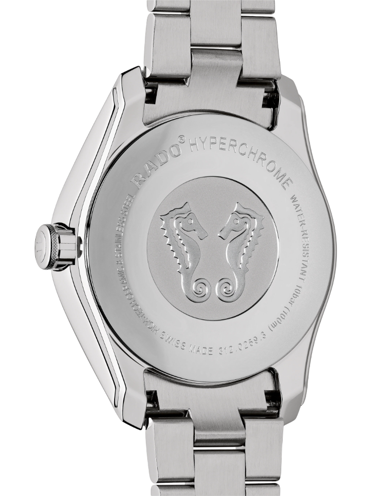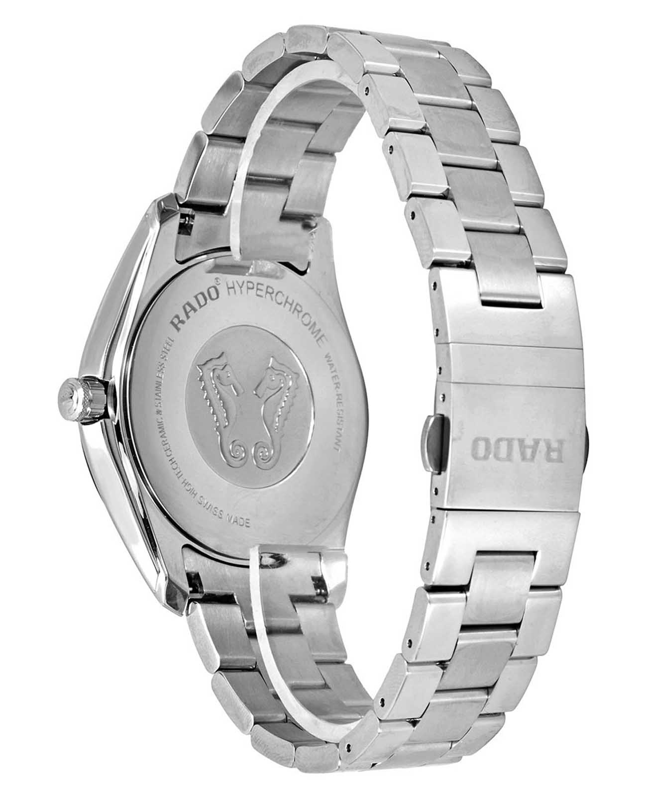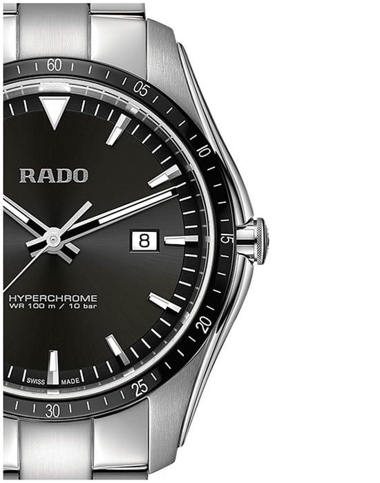 Швейцарские кварцевые часы Rado Hyperchrome R32502153. Сапфировое стеклоСапфировое стеклоПрочный и надёжный материал из кристалла сапфира синтетического происхождения, характеризующийся особой твёрдостью и устойчивостью к царапинам и повреждениям. устойчивое к мелким механическим повреждениям. Корпус изготовлен из нержавеющей стали. БезельБезельВнешний ободок, закрепляющий стекло. В спортивных часах так называется поворотное кольцо с делениями на циферблате, выполняет роль таймера – замеряет отрезки времени на шкале. Неподвижный безель – элемент декора. Однонаправленно вращающийся безель на дайверских часах позволяет фиксировать моменты погружения и выныривания на поверхность. из высокотехнологичной керамикиВысокотехнологичная керамикаИнновационный запатентованный Rado материал с гладкой или матовой поверхностью. Керамика за счёт кристаллической структуры обладает повышенной устойчивостью от возникновения царапин. Материал способен принимать температуру тела человека, обеспечивая невероятный комфорт при ношении.. Стрелки с люминесцентным покрытиемЛюминесцентное покрытиеПозволяет считывать показания времени в темноте. Производители наносят на стрелки, часовые индексы, безель или поверхность циферблата светонакопительный состав, дающий холодное свечение.. Класс водозащиты: 100 метров, позволит плавать, нырять и заниматься другими водными видами спорта. Браслет из стали на раскладной застёжкеРаскладная застёжкаТакой тип застёжки используется только на браслетах из металла. Она никогда не раскрывается полностью, происходит разделение на 2 и более частей. Раскладывающая застёжка снизит вероятность потери часов к минимуму..