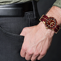 Часы выполнены в классическом дизайне, модель останется актуальной на долгие годы. Красный циферблат «солнечные лучи» дополнен контрастными цифрами. Премиальный аксессуар имеет роскошный корпус – он выполнен из бронзы и высокотехнологичной керамикиВысокотехнологичная керамикаИнновационный запатентованный Rado материал с гладкой или матовой поверхностью. Керамика за счёт кристаллической структуры обладает повышенной устойчивостью от возникновения царапин. Материал способен принимать температуру тела человека, обеспечивая невероятный комфорт при ношении.. Безупречную точность хода регулирует швейцарский автоматический калибр ETA C07.611 с запасом хода до 80 часов. Антибликовое покрытие сапфирового стекла улучшает читаемость показаний. Стрелки и метки дополнены люминесцентным покрытиемЛюминесцентное покрытиеПозволяет считывать показания времени в темноте. Производители наносят на стрелки, часовые индексы, безель или поверхность циферблата светонакопительный состав, дающий холодное свечение.. Закручивающаяся задняя крышка и завинчивающаяся заводная головка усиливают водостойкость модели до 30 бар. На метке 3 часов расположена апертура даты. Диаметр корпуса: 42 мм.