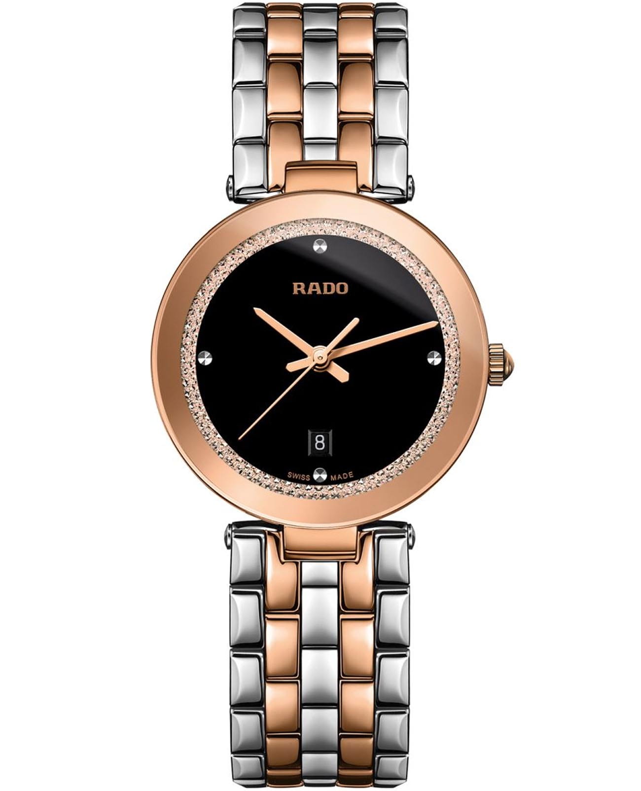 Женские швейцарские кварцевые часы Rado Florence R48873173. Сапфировое стеклоСапфировое стеклоПрочный и надёжный материал из кристалла сапфира синтетического происхождения, характеризующийся особой твёрдостью и устойчивостью к царапинам и повреждениям. устойчивое к мелким механическим повреждениям. Стальной браслет на застёжке-бабочке. Корпус и браслет часов изготовлены из нержавеющей стали с частичным PVD-покрытиемPVDУльтратонкое покрытие наносится в технике вакуумного напыления, сочетает в себе нитрид титана особой прочности со слоем золота или оксида хрома. Несёт в себе декоративную или защитную функцию.. Окошко даты находится в положении 6 часов. Класс водозащиты: 30 метров, позволит защитить корпус от случайных брызг или капель дождя.