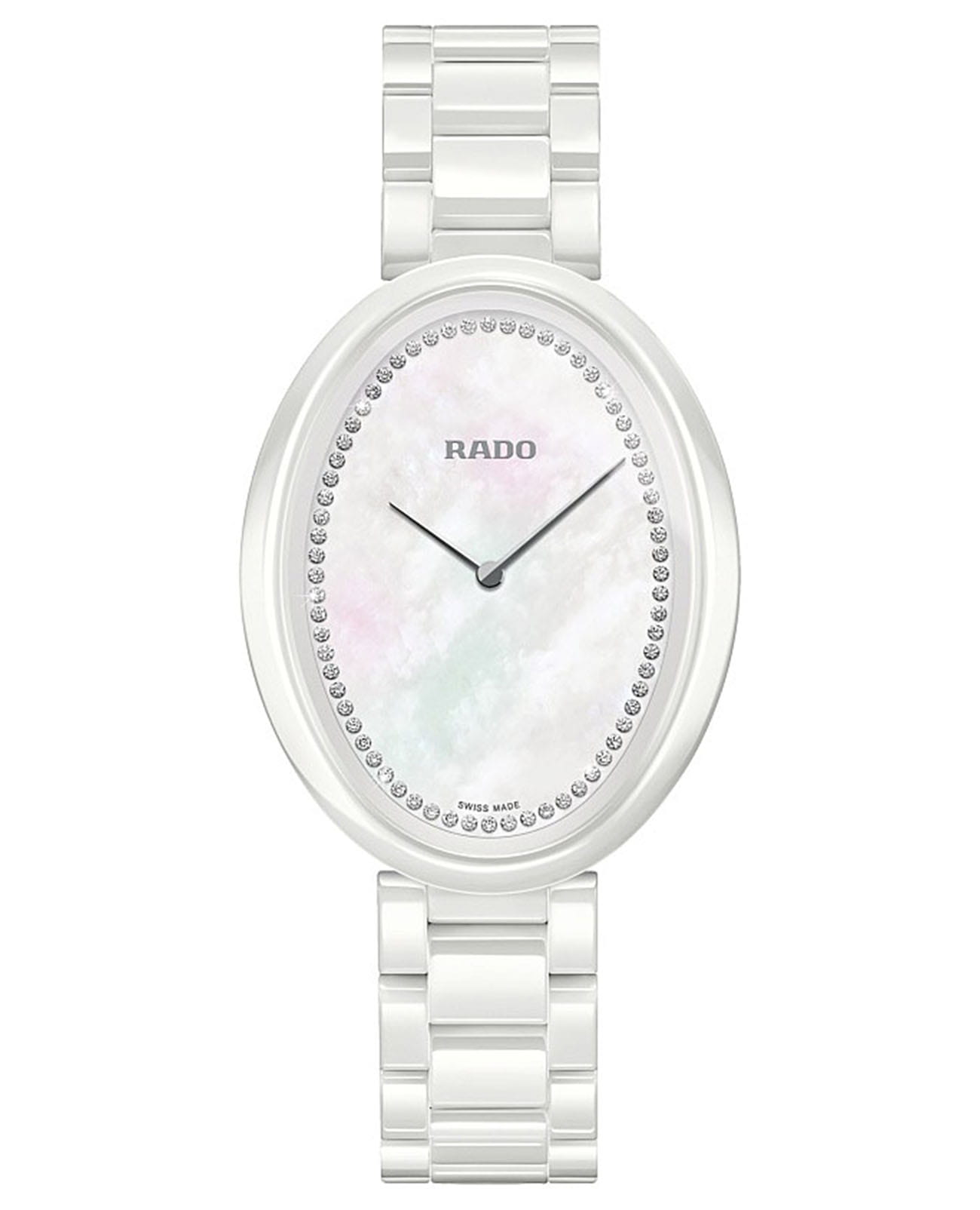 Женские керамические швейцарские часы с бриллиантами Rado Esenza Ceramic Touch R53092902, кварцевый механизм с высокой точностью. Сапфировое стекло устойчивое к появлению царапин, обладающее высокой прозрачностью. Класс водозащиты: 30 метров, позволит защитить корпус от случайных брызг или капель дождя. Корпус часов изготовлен из керамики, белого цвета.
