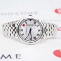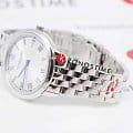 Raymond Weil Toccata (артикул 5385-ST-00659) — элегантные женские часы, сочетающие классический дизайн и функциональность. Корпус диаметром 34 мм выполнен из нержавеющей стали, что обеспечивает прочность и долговечность. Серебристый циферблат украшен римскими цифрами и синими стрелками, добавляя часам изысканности. Окошко даты на отметке «3 часа» обеспечивает удобство использования. Сапфировое стеклоСапфировое стеклоПрочный и надёжный материал из кристалла сапфира синтетического происхождения, характеризующийся особой твёрдостью и устойчивостью к царапинам и повреждениям. защищает часы от царапин, а водонепроницаемость до 50 метров делает их подходящими для повседневной носки. Надёжный кварцевый механизм гарантирует точность хода. Браслет из нержавеющей стали оснащён раскладной застёжкойРаскладная застёжкаТакой тип застёжки используется только на браслетах из металла. Она никогда не раскрывается полностью, происходит разделение на 2 и более частей. Раскладывающая застёжка снизит вероятность потери часов к минимуму. с двойной системой безопасности, что обеспечивает комфорт и надёжность при ношении.