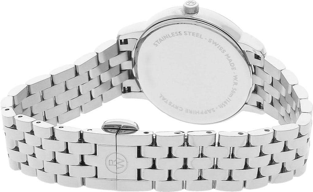 Raymond Weil Toccata (артикул 5385-ST-97081) — элегантные женские часы, сочетающие изысканность и функциональность. Корпус диаметром 34 мм выполнен из нержавеющей стали, что обеспечивает прочность и долговечность. Циферблат из белого перламутра украшен 11 бриллиантами, выступающими в роли часовых меток, добавляя часам роскошный вид. Окошко даты расположено на отметке «3 часа» для удобства использования. Сапфировое стеклоСапфировое стеклоПрочный и надёжный материал из кристалла сапфира синтетического происхождения, характеризующийся особой твёрдостью и устойчивостью к царапинам и повреждениям. защищает циферблат от царапин, а водонепроницаемость до 50 метров делает часы подходящими для ежедневной носки. Надёжный кварцевый механизм гарантирует стабильную точность хода. Браслет из нержавеющей стали на застёжке-бабочке с кнопкамиЗастёжка "бабочка"Такой вид застёжки дополняется предохранителями, помогающими избежать случайного раскрытия браслета. Обладают изящным исполнением. , что обеспечивает комфорт и надёжность при ношении.