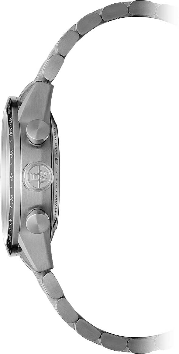 Циферблат с накладными метками в виде штрихов защищен прочным сапфировым стекломСапфировое стеклоПрочный и надёжный материал из кристалла сапфира синтетического происхождения, характеризующийся особой твёрдостью и устойчивостью к царапинам и повреждениям., а метки и стрелки имеют люминесцентное покрытиеЛюминесцентное покрытиеПозволяет считывать показания времени в темноте. Производители наносят на стрелки, часовые индексы, безель или поверхность циферблата светонакопительный состав, дающий холодное свечение., которое светится в темноте после небольшой зарядки на свету. БезельБезельВнешний ободок, закрепляющий стекло. В спортивных часах так называется поворотное кольцо с делениями на циферблате, выполняет роль таймера – замеряет отрезки времени на шкале. Неподвижный безель – элемент декора. Однонаправленно вращающийся безель на дайверских часах позволяет фиксировать моменты погружения и выныривания на поверхность. с керамической вставкой добавляет современный акцент. Завинчивающаяся задняя крышка и заводная головка с логотипом RW подчеркивают высокое качество.