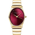 Часы Rosefield Oval Burgundy (модель OVGSG-OV15) — это элегантный женский аксессуар, сочетающий современный стиль и функциональность. Корпус овальной формы размером 24x29 мм выполнен из нержавеющей стали с PVD-покрытиемPVDУльтратонкое покрытие наносится в технике вакуумного напыления, сочетает в себе нитрид титана особой прочности со слоем золота или оксида хрома. Несёт в себе декоративную или защитную функцию., что придаёт часам утончённый и изысканный вид. Бордовый циферблат с золотистыми часовыми метками и стрелками создаёт яркий контраст. Циферблат защищён минеральным стекломМинеральное стеклоМинеральное стекло представляет собой искусственно выращенный минерал кварца. Такое стекло отличается особой устойчивостью к повреждениям и царапинам. Уступает по некоторым качествам сапфировому стеклу., устойчивым к царапинам.