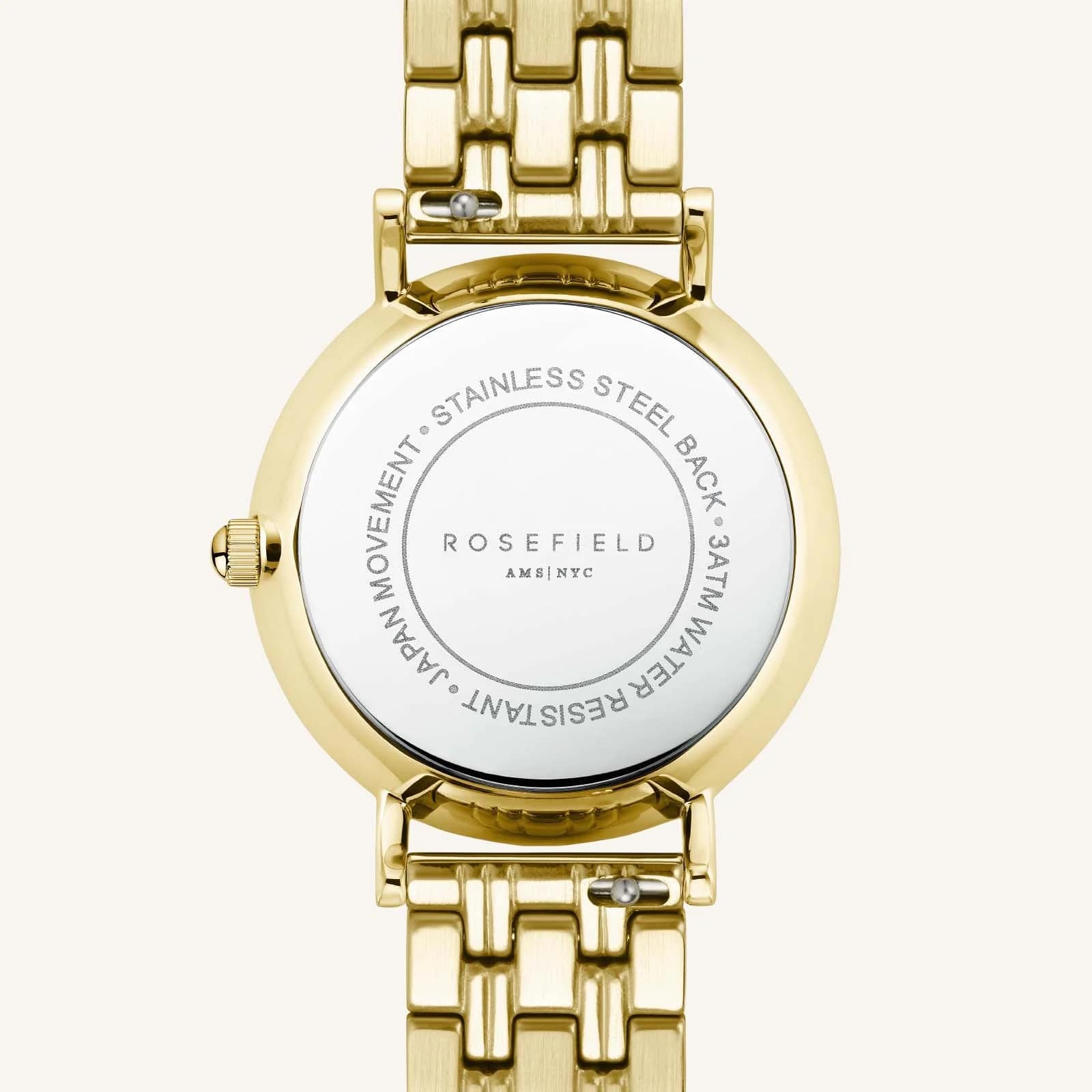 Американские женские наручные часы с кварцевым механизмом Rosefield The Small Edit SCGSG-S05, кварцевый механизм с высокой точностью. Класс водозащиты: 30 метров, позволит защитить корпус от случайных брызг или капель дождя. Корпус часов и браслет изготовлены из стали с IP-покрытиемIP-покрытиеМетод ионного напыления. Демонстрирует повышенную устойчивость к истиранию, окислению и химическим веществам. Под воздействием высокого давления и температуры около 1500°C молекулы металла надёжно соединяются с частицами корпуса часов.. Раскладная застёжкаРаскладная застёжкаТакой тип застёжки используется только на браслетах из металла. Она никогда не раскрывается полностью, происходит разделение на 2 и более частей. Раскладывающая застёжка снизит вероятность потери часов к минимуму..