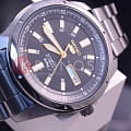 Современные японские наручные мужские часы. Круглый корпус и браслет часов выполнены из  высокопрочной стали с антикоррозийными свойствами. Темный фон циферблата и стальные элементы дизайна. Водонепроницаемость 5 ATM. Минеральное стекло Hardlex, устойчивое к появлению царапин.