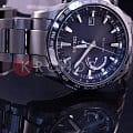 Astron GPS Solar World-Time. Часы со встроенным GPS-приемником определяют часовой пояс, дату и точное время. Питание от солнечной энергии, индикатор уровня зарядки батареи. Функция сохранения энергии. Запас хода при полной зарядке аккумулятора 6 месяцев, при включенной функции сохранения энергии - 2 года. Ручная и автоматическая корректировка времени и часового пояса. Установка летнего времени. Функции приема GPS-сигнала: режим ''В полете'', показ количества спутников, показ результата последнего приема, проверка установленного часового пояса, автоматический прием информации о секунде координации. Мировое время - часы распознают 40 часовых поясов. Ретроградный индикатор отображает: состояние зарядки батареи, режим ''В полете'', включение/отключение летнего времени. Керамический безель. Завинчивающаяся задняя крышка. Браслет с раскладывающейся застежкой.