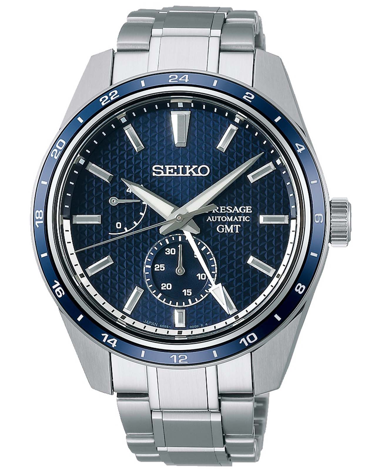 Механические часы Seiko Presage Sharp Edged GMT SPB303 — это лимитированная серия, выпущенная тиражом всего 900 экземпляров. Дизайн циферблата вдохновлён древним японским узором «Асаноха», известным ещё с эпохи Хэйан и отражающим философию гармонии и природной целостности. Часы оснащены калибром 6R64 — надёжным механическим механизмом с автоподзаводом и возможностью ручной подзаводки. Механизм работает на частоте 28 800 полуколебаний в час, имеет 29 драгоценных камней и обеспечивает запас хода до 45 часов с на циферблате. Также реализованы функция стоп-секунды для точной установки времени, отображение второго часового пояса в 24-часовом формате центральной стрелкой, а также календарная корректировка разницы во времениВторой часовой поясФункция, позволяющая отображать время двух часовых поясов одновременно., что делает модель особенно удобной для путешественников. Циферблат оформлен штриховыми метками, а дата вынесена на отдельный малый циферблат в положении 6 часов. Стрелки и индексы дополнены люминесцентным покрытиемЛюминесцентное покрытиеПозволяет считывать показания времени в темноте. Производители наносят на стрелки, часовые индексы, безель или поверхность циферблата светонакопительный состав, дающий холодное свечение. LumiBrite, обеспечивающим отличную читаемость даже в условиях слабого освещения. Защиту циферблата обеспечивает сапфировое стеклоСапфировое стеклоПрочный и надёжный материал из кристалла сапфира синтетического происхождения, характеризующийся особой твёрдостью и устойчивостью к царапинам и повреждениям. с антибликовым покрытием на внутренней поверхности, что делает его не только прочным, но и удобным для считывания информации при любом освещении. Корпус изготовлен из стали с частичным PVD-покрытиемPVDУльтратонкое покрытие наносится в технике вакуумного напыления, сочетает в себе нитрид титана особой прочности со слоем золота или оксида хрома. Несёт в себе декоративную или защитную функцию., придающим модели благородный внешний вид. Заводная головка имеет рифлёную форму, а задняя крышка — завинчивающуюся конструкцию с прозрачным окном и гравировкой уникального серийного номера, что подчёркивает эксклюзивность каждой модели. Браслет выполнен из нержавеющей стали и оснащён трёхсгибной раскладной застёжкойРаскладная застёжкаТакой тип застёжки используется только на браслетах из металла. Она никогда не раскрывается полностью, происходит разделение на 2 и более частей. Раскладывающая застёжка снизит вероятность потери часов к минимуму. с кнопочным механизмом, обеспечивающей комфорт и надёжность при ношении. В комплекте также предусмотрен сменный кожаный ремешок для более неформального образа. Часы обладают водонепроницаемостью WR 100, что позволяет использовать их при плавании или занятиях водными видами спорта без глубокого погружения. Эти часы станут идеальным выбором для тех, кто ценит историю, точность и эстетику — универсальный аксессуар, сочетающий в себе японское мастерство, практичность и современный дизайн.