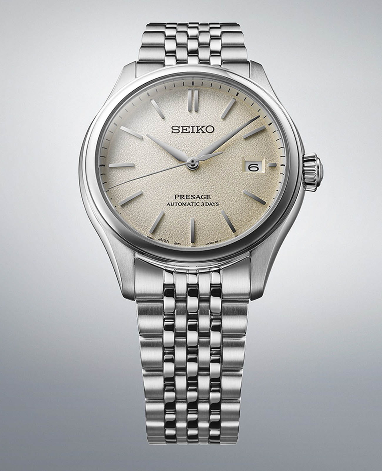 Мужские механические часы Seiko Presage Classic SPB463 — это отражение японского мастерства и внимания к деталям. Серия вдохновлена цветами, текстурами и материалами традиционных японских ремёсел, что нашло своё отражение в изысканном дизайне и высокой функциональности модели. Часы оснащены калибром 6R55 — надёжным механизмом с автоподзаводом и возможностью ручной подзаводки. Механизм работает на частоте 21 600 полуколебаний в час, имеет 24 драгоценных камня и обеспечивает запас хода до 72 часов. Также реализована функция стоп-секунды для точной установки времени и защита от магнитных полей до 4800 А/м. Циферблат бежевого цвета выполнен в стиле «широ-иро» — в оттенке неотбелённого шелка. Его поверхность украшена тонкой текстурой, напоминающей благородный блеск натуральной ткани. Центральный узор взаимодействует со светом, создавая ощущение глубины и элегантности. Метки выполнены в виде аккуратных штрихов, а информация о дате вынесена в окошко в положении 3 часов. Защиту циферблата обеспечивает сапфировое стеклоСапфировое стеклоПрочный и надёжный материал из кристалла сапфира синтетического происхождения, характеризующийся особой твёрдостью и устойчивостью к царапинам и повреждениям. выпуклой формы с антибликовым покрытием с обеих сторон. Корпус диаметром 40,2 мм изготовлен из нержавеющей стали и дополнен прозрачной завинчивающейся задней крышкой, через которую можно рассмотреть работу механизма. Браслет выполнен из стали и оснащён раскладной застёжкойРаскладная застёжкаТакой тип застёжки используется только на браслетах из металла. Она никогда не раскрывается полностью, происходит разделение на 2 и более частей. Раскладывающая застёжка снизит вероятность потери часов к минимуму., обеспечивающей комфорт и уверенную фиксацию на запястье. Часы водонепроницаемы до 100 метров , что позволяет использовать их при плавании или занятиях водными видами спорта. Эти часы станут универсальным аксессуаром для тех, кто ценит сочетание культурного наследия, технологий и эстетики — идеальный выбор для повседневной носки и торжественных случаев.