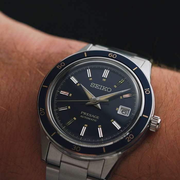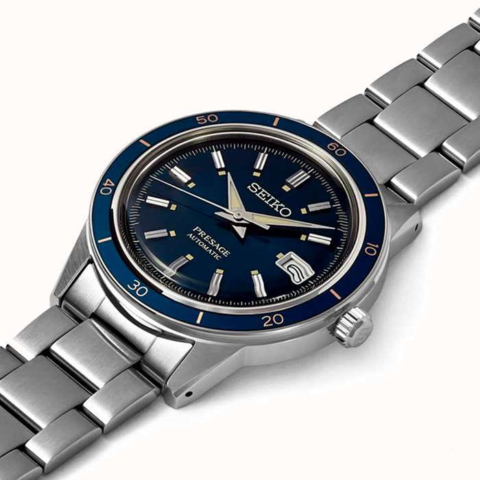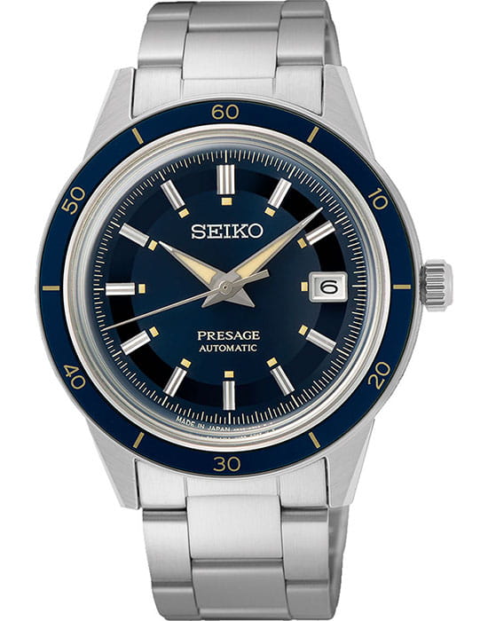 Мужские наручные часы Seiko SRPG05J1 из коллекции Presage Style 60s сочетают в себе классический дизайн и надежность современных технологий. Модель обладает круглым корпусом диаметром 40,8 мм, изготовленным из нержавеющей стали, что обеспечивает высокую устойчивость к внешним воздействиям . Толщина корпуса составляет 12 мм, а для защиты используется минеральное стеклоМинеральное стеклоМинеральное стекло представляет собой искусственно выращенный минерал кварца. Такое стекло отличается особой устойчивостью к повреждениям и царапинам. Уступает по некоторым качествам сапфировому стеклу. Hardlex Crystal, обеспечивающее прочную защиту от царапин .  БезельБезельВнешний ободок, закрепляющий стекло. В спортивных часах так называется поворотное кольцо с делениями на циферблате, выполняет роль таймера – замеряет отрезки времени на шкале. Неподвижный безель – элемент декора. Однонаправленно вращающийся безель на дайверских часах позволяет фиксировать моменты погружения и выныривания на поверхность. с PVD-покрытиемPVDУльтратонкое покрытие наносится в технике вакуумного напыления, сочетает в себе нитрид титана особой прочности со слоем золота или оксида хрома. Несёт в себе декоративную или защитную функцию.. Браслет также выполнен из нержавеющей стали с раскладной застежкойРаскладная застёжкаТакой тип застёжки используется только на браслетах из металла. Она никогда не раскрывается полностью, происходит разделение на 2 и более частей. Раскладывающая застёжка снизит вероятность потери часов к минимуму., гарантирующей комфортное ношение . Циферблат глубокого синего цвета украшен текстурой, которая подчеркивает элегантный стиль модели. Часы оснащены функцией отображения даты на позиции «3 часа» . Модель работает на автоматическом механизме с калибром 4R35, который включает 23 камня и обладает запасом хода до 41 часа . Водонепроницаемость составляет WR 50, что позволяет защитить корпус от случайных брызг и кратковременного контакта с водой . Вдохновленные культурой 1960-х годов, эти часы демонстрируют уникальный стиль и внимание к деталям, сохраняя при этом практичность для повседневного использования.