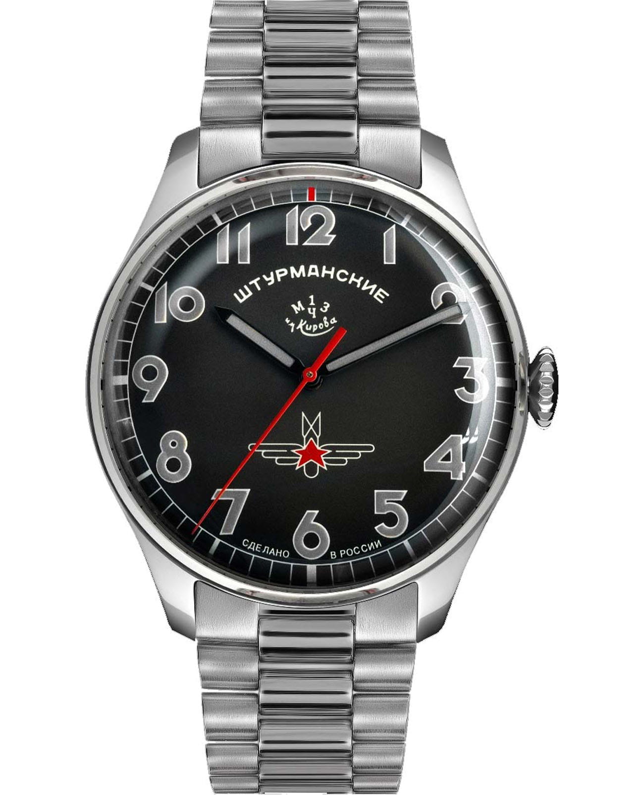 Штурманские мужские российские механические часы 2609-9045925B с механизмом высокой точности. Класс водозащиты: 30 метров, позволит защитить корпус от случайных брызг или капель дождя. Корпус часов изготовлен из стали. Сапфировое стеклоСапфировое стеклоПрочный и надёжный материал из кристалла сапфира синтетического происхождения, характеризующийся особой твёрдостью и устойчивостью к царапинам и повреждениям. устойчивое к мелким механическим повреждениям. Стальной браслет на раскладной застёжкойРаскладная застёжкаТакой тип застёжки используется только на браслетах из металла. Она никогда не раскрывается полностью, происходит разделение на 2 и более частей. Раскладывающая застёжка снизит вероятность потери часов к минимуму.. Стрелки и метки с люминесцентным покрытиемЛюминесцентное покрытиеПозволяет считывать показания времени в темноте. Производители наносят на стрелки, часовые индексы, безель или поверхность циферблата светонакопительный состав, дающий холодное свечение.. Задняя крышка украшена портретом Юрия Гагарина и крепится на 4-х винтах.