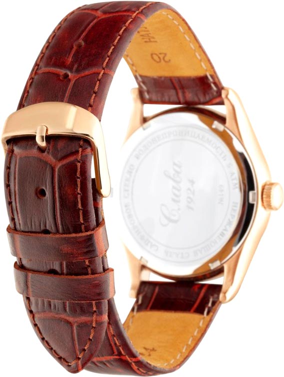 Российские механические часы с автоподзаводом Слава Премьер 1493279/300-8215. Корпус часов выполнен из стали с IP-покрытиемIP-покрытиеМетод ионного напыления. Демонстрирует повышенную устойчивость к истиранию, окислению и химическим веществам. Под воздействием высокого давления и температуры около 1500°C молекулы металла надёжно соединяются с частицами корпуса часов., что придает им долговечность и устойчивость к внешним воздействиям. Сапфировое стеклоСапфировое стеклоПрочный и надёжный материал из кристалла сапфира синтетического происхождения, характеризующийся особой твёрдостью и устойчивостью к царапинам и повреждениям.. Класс водозащиты часов составляет 50 метров, позволит защитить корпус от случайных брызг или капель дождя. Кожаный браслет с стандартной застежкой обеспечивает комфортное ношение и надежную фиксацию на запястье. Эти часы идеально подойдут для повседневного использования, сочетая в себе стиль, надежность и функциональность. Окошко даты находится в положении 3 часа.