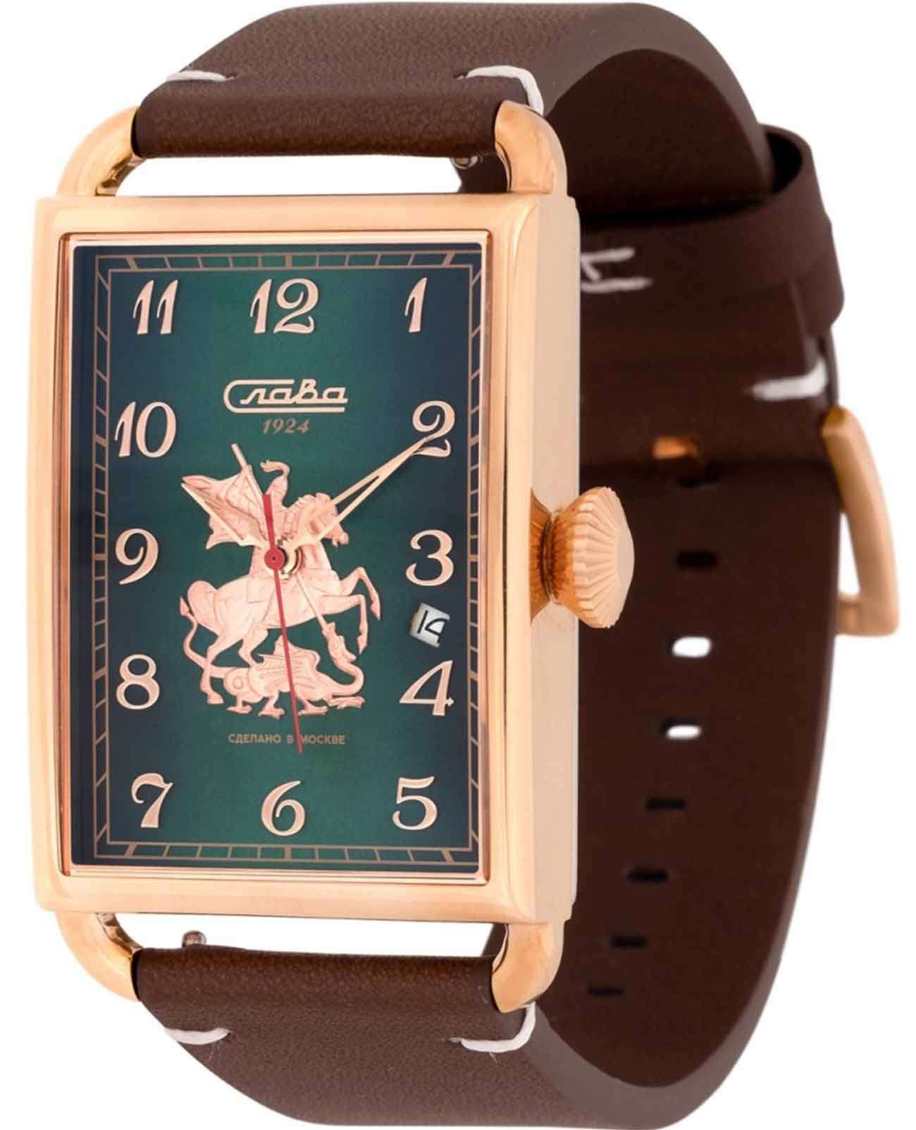 Часы Слава Москва 8703734/300-2414 — это воплощение элегантности и стиля, которое станет идеальным дополнением к вашему деловому гардеробу. Созданные в России, они оснащены надежным механическим механизмом калибра Слава 2414. Корпус выполнен из высококачественной стали с PVDPVDУльтратонкое покрытие наносится в технике вакуумного напыления, сочетает в себе нитрид титана особой прочности со слоем золота или оксида хрома. Несёт в себе декоративную или защитную функцию. покрытием, что обеспечивает долговечность и изысканный внешний вид. Зеленый циферблат украшен изображением Георгия Победоносца и защищен прочным сапфировым стекломСапфировое стеклоПрочный и надёжный материал из кристалла сапфира синтетического происхождения, характеризующийся особой твёрдостью и устойчивостью к царапинам и повреждениям., которое устойчиво к царапинам. Арабские цифры и окошко даты, расположенное между отметками 3 и 4 часа, добавляют функциональности и удобства в использовании. Задняя крышка, крепящаяся на 4 винтах, украшена надписью «Москва», подчеркивая уникальность и оригинальность модели. Кожаный ремешок с классической застежкой и системой быстрой замены не только обеспечивает комфорт, но и позволяет легко менять его по вашему желанию. Часы обладают водозащитой 50WR, что делает их подходящими для ежедневного ношения. Компактные габариты и вес в 70 грамм делают их удобными и практически незаметными на запястье. Эта лимитированная серия выпущена в количестве всего 500 экземпляров, что придает особую ценность и эксклюзивность вашему выбору. Часы поставляются в стильной подарочной упаковке, что делает их отличным подарком для ценителей высокого качества и утонченного дизайна.