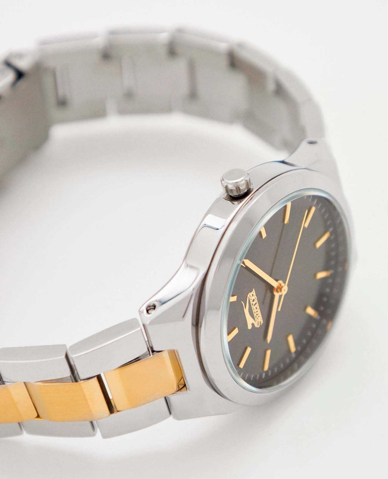 Женские наручные часы Slazenger SL.09.2075.3.03 сочетают в себе элегантный дизайн и функциональность. Модель обладает круглым корпусом диаметром 34 мм, изготовленным из суперметалла, что обеспечивает высокую устойчивость к внешним воздействиям. Браслет выполнен из того же материала с частичным IP-покрытиемIP-покрытиеМетод ионного напыления. Демонстрирует повышенную устойчивость к истиранию, окислению и химическим веществам. Под воздействием высокого давления и температуры около 1500°C молекулы металла надёжно соединяются с частицами корпуса часов. на раскладной застежкойРаскладной замокДанный вариант застежки используется только на часах с металлическим браслетом. Отличительная особенность такого крепления в том, что длина браслета становится универсальной и вы можете самостоятельно отрегулировать нужный вам размер – застежка просто двигается по браслету часов., гарантирующем комфортное ношение и безопасность. Для защиты используется минеральное стеклоМинеральное стеклоМинеральное стекло представляет собой искусственно выращенный минерал кварца. Такое стекло отличается особой устойчивостью к повреждениям и царапинам. Уступает по некоторым качествам сапфировому стеклу., обеспечивающее прочную защиту от царапин. Часы работают на кварцевом механизме, что гарантирует точное время без необходимости подзаводки. Водонепроницаемость достигает 3 атмосфер (WR30), что позволяет использовать их при контакте с брызгами воды, однако не рекомендуется для плавания или дайвинга.
