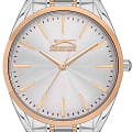 Эти стильные женские часы Slazenger SL.09.2155.3.02 идеально подчеркивают утонченный вкус своей обладательницы. Они оснащены надежным кварцевым механизмом, который обеспечивает точность хода. Корпус выполнен из качественного суперметалла, а безельБезельВнешний ободок, закрепляющий стекло. В спортивных часах так называется поворотное кольцо с делениями на циферблате, выполняет роль таймера – замеряет отрезки времени на шкале. Неподвижный безель – элемент декора. Однонаправленно вращающийся безель на дайверских часах позволяет фиксировать моменты погружения и выныривания на поверхность. с розово-золотистым IP-покрытиемIP-покрытиеМетод ионного напыления. Демонстрирует повышенную устойчивость к истиранию, окислению и химическим веществам. Под воздействием высокого давления и температуры около 1500°C молекулы металла надёжно соединяются с частицами корпуса часов. придаёт аксессуару современный вид и дополнительную прочность. Минеральное стеклоМинеральное стеклоМинеральное стекло представляет собой искусственно выращенный минерал кварца. Такое стекло отличается особой устойчивостью к повреждениям и царапинам. Уступает по некоторым качествам сапфировому стеклу. надежно защищает циферблат от возможных повреждений. Серебристый циферблат выполнен по технологии Sunray, что создает эффект солнечных лучей и придает часам особую изысканность. Металлический браслет с частичным розово-золотистым IP-покрытиемIP-покрытиеМетод ионного напыления. Демонстрирует повышенную устойчивость к истиранию, окислению и химическим веществам. Под воздействием высокого давления и температуры около 1500°C молекулы металла надёжно соединяются с частицами корпуса часов. и с раскладной застёжкойРаскладная застёжкаТакой тип застёжки используется только на браслетах из металла. Она никогда не раскрывается полностью, происходит разделение на 2 и более частей. Раскладывающая застёжка снизит вероятность потери часов к минимуму. обеспечивает комфортное и надежное прилегание к запястью. Диаметр корпуса составляет 32 мм, а толщина — всего 9 мм, что придаёт часам изящность и элегантность. Водозащита уровня WR 30 позволяет не беспокоиться о небольших брызгах, которые могут возникнуть в повседневной жизни. Вес часов составляет 78 грамм, что делает их легкими и удобными для ежедневного ношения. Эти часы станут идеальным аксессуаром, подчеркивающим стиль и индивидуальность современной женщины.