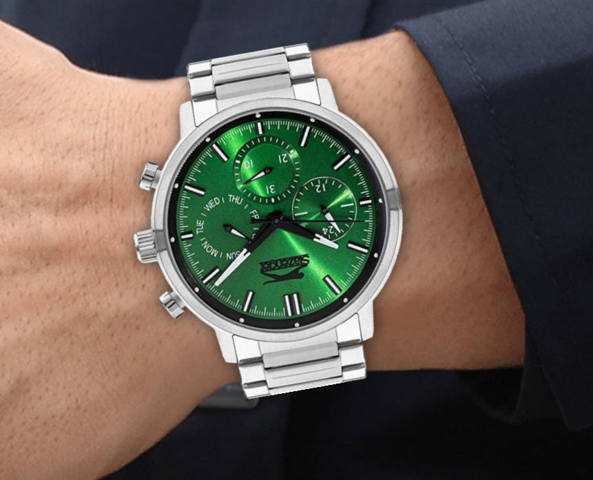 Часы Slazenger SL.09.2213.2.01 представляют собой элегантное сочетание британского стиля и современных технологий, создавая идеальный аксессуар для мужчин, которые ценят как функциональность, так и внешний вид. Эта модель оснащена кварцевым механизмом, обеспечивающим точность хода и долговечность. Корпус часов, выполненный из прочного суперметалла, имеет круглую форму и диаметр 44 мм, что придает им классический и универсальный вид. Минеральное стеклоМинеральное стеклоМинеральное стекло представляет собой искусственно выращенный минерал кварца. Такое стекло отличается особой устойчивостью к повреждениям и царапинам. Уступает по некоторым качествам сапфировому стеклу. защищает циферблат, устойчивый к царапинам и повреждениям, а его зеленый цвет добавляет оригинальности и свежести образу. Серебристый браслет, также изготовленный из суперметалла, обеспечивает комфорт и надежную фиксацию на запястье, подчеркивая стиль владельца, он оснащён раскладной застёжкойРаскладная застёжкаТакой тип застёжки используется только на браслетах из металла. Она никогда не раскрывается полностью, происходит разделение на 2 и более частей. Раскладывающая застёжка снизит вероятность потери часов к минимуму. с системой блокировки, обеспечивая надёжную фиксацию на запястье. Часы обладают степенью водозащиты WR 50 (5 ATM), что позволяет использовать их в различных условиях, не опасаясь за их сохранность. Люминесцентное покрытиеЛюминесцентное покрытиеПозволяет считывать показания времени в темноте. Производители наносят на стрелки, часовые индексы, безель или поверхность циферблата светонакопительный состав, дающий холодное свечение. обеспечивает удобное считывание времени в темноте, а часовые индексы на циферблате делают отображение времени четким и понятным. Модель также оснащена функцией отображения даты, добавляя практичности и удобства в повседневной жизни. Этот аксессуар прекрасно подойдет для деловых встреч, повседневного ношения или особых случаев, сочетая в себе стиль и функциональность.