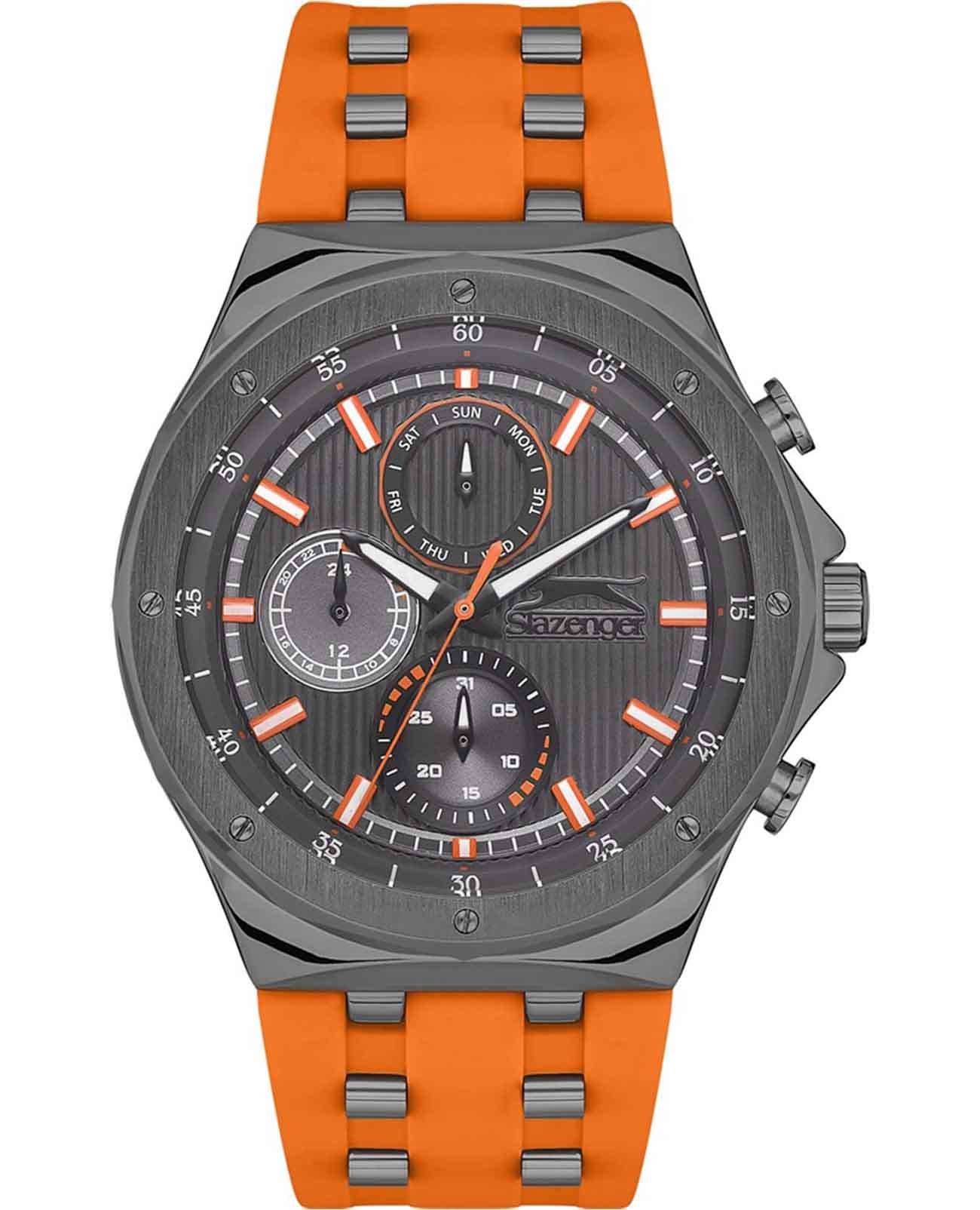 Мужские наручные часы Slazenger SL.09.2218.2.07 — идеальный аксессуар для тех, кто ценит стиль и функциональность. Эти часы, созданные известным британским брендом, отличаются высоким качеством и надежностью. Оснащенные кварцевым механизмом, они гарантируют точность хода и долгий срок службы. Корпус часов выполнен из прочного металла с серым IP-покрытиемIP-покрытиеМетод ионного напыления. Демонстрирует повышенную устойчивость к истиранию, окислению и химическим веществам. Под воздействием высокого давления и температуры около 1500°C молекулы металла надёжно соединяются с частицами корпуса часов., а такой же серый циферблат защищен минеральным стекломМинеральное стеклоМинеральное стекло представляет собой искусственно выращенный минерал кварца. Такое стекло отличается особой устойчивостью к повреждениям и царапинам. Уступает по некоторым качествам сапфировому стеклу., устойчивым к царапинам и повреждениям. Оранжевый резиновый ремешок с металлическими вставками с серым IP-покрытиемIP-покрытиеМетод ионного напыления. Демонстрирует повышенную устойчивость к истиранию, окислению и химическим веществам. Под воздействием высокого давления и температуры около 1500°C молекулы металла надёжно соединяются с частицами корпуса часов. и классической застежкой обеспечивает комфортное ношение и надежную фиксацию на запястье. Диаметр корпуса составляет 46 мм, а толщина — 12 мм, что придает часам современный и стильный вид. Благодаря водозащите уровня WR 50, вы можете не беспокоиться о случайных попаданиях влаги, что делает эти часы идеальными для повседневного использования. Стрелки снабжены люминесцентным покрытиемЛюминесцентное покрытиеПозволяет считывать показания времени в темноте. Производители наносят на стрелки, часовые индексы, безель или поверхность циферблата светонакопительный состав, дающий холодное свечение., что позволяет легко считывать время в темноте. Функциональность модели включает в себя отображение даты, дня недели и времени в 24-часовом формате на дополнительных малых циферблатах, что делает часы не только стильными, но и практичными.