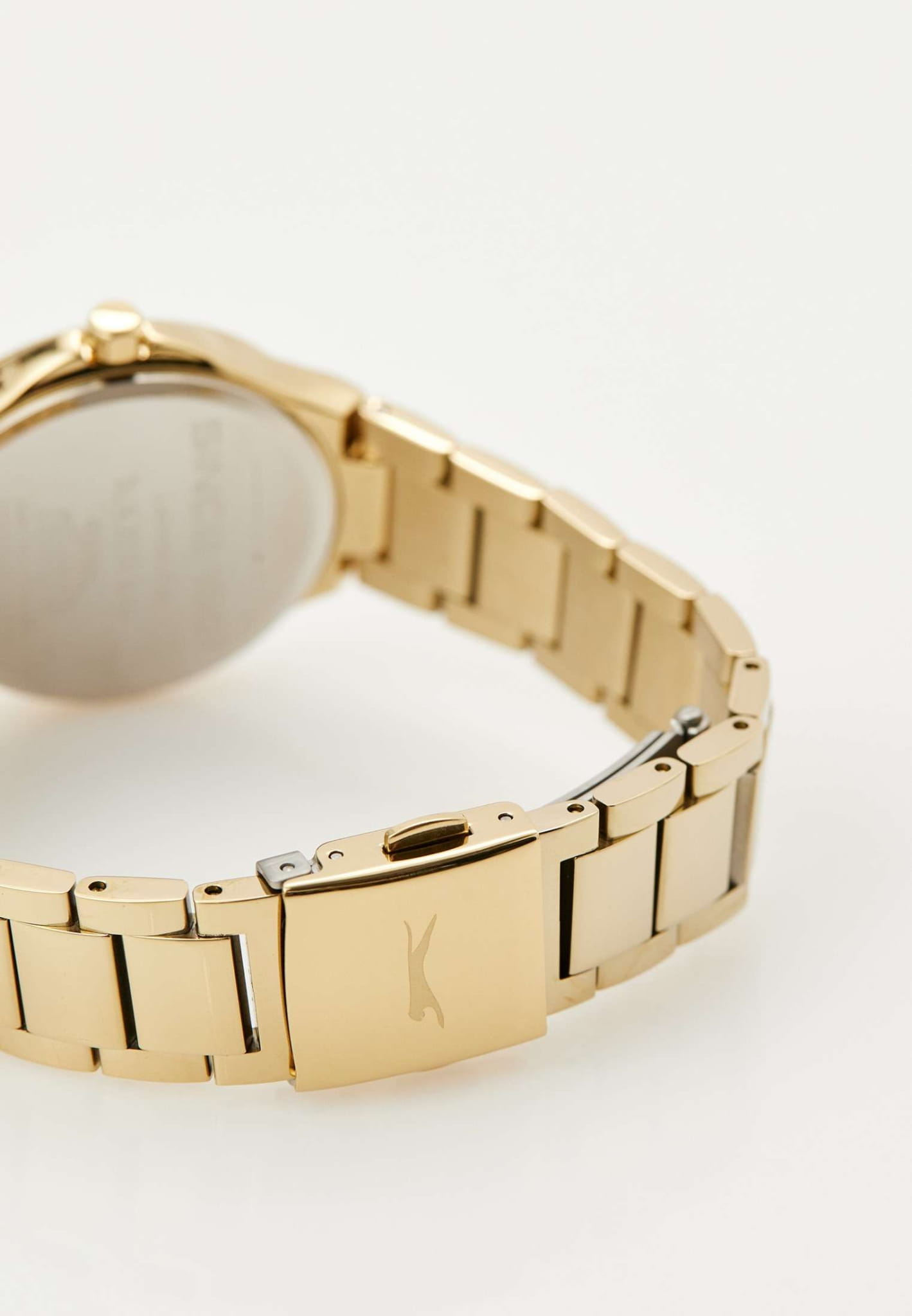 Часы Slazenger SL.09.2225.3.05 — это изысканный аксессуар, который подчеркнёт ваш стиль и индивидуальность. Модель оснащена надёжным кварцевым механизмом, обеспечивающим точность хода. Корпус из прочного металла с золотистым IP-покрытиемIP-покрытиеМетод ионного напыления. Демонстрирует повышенную устойчивость к истиранию, окислению и химическим веществам. Под воздействием высокого давления и температуры около 1500°C молекулы металла надёжно соединяются с частицами корпуса часов. диаметром 35 мм, а безельБезельВнешний ободок, закрепляющий стекло. В спортивных часах так называется поворотное кольцо с делениями на циферблате, выполняет роль таймера – замеряет отрезки времени на шкале. Неподвижный безель – элемент декора. Однонаправленно вращающийся безель на дайверских часах позволяет фиксировать моменты погружения и выныривания на поверхность. украшен сияющими кристаллами. Перламутровый циферблат придаёт часам особый шарм. Металлический браслет с золотистым IP-покрытиемIP-покрытиеМетод ионного напыления. Демонстрирует повышенную устойчивость к истиранию, окислению и химическим веществам. Под воздействием высокого давления и температуры около 1500°C молекулы металла надёжно соединяются с частицами корпуса часов. с удобной раскладной застёжкойРаскладная застёжкаТакой тип застёжки используется только на браслетах из металла. Она никогда не раскрывается полностью, происходит разделение на 2 и более частей. Раскладывающая застёжка снизит вероятность потери часов к минимуму. гармонично дополняет изящный дизайн. Минеральное стеклоМинеральное стеклоМинеральное стекло представляет собой искусственно выращенный минерал кварца. Такое стекло отличается особой устойчивостью к повреждениям и царапинам. Уступает по некоторым качествам сапфировому стеклу. защищает циферблат от царапин, а водозащита уровня WR 30 позволяет не беспокоиться о случайных каплях воды. Заводная головка оснащена специальной защитой. Эти часы станут прекрасным выбором для тех, кто ценит сочетание элегантности и функциональности.