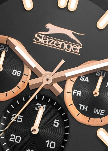 Часы Slazenger SL.09.2289.2.03 — это сочетание современного дизайна и функциональности, идеально подходящее для тех, кто ценит стиль и надежность. Корпус и браслет выполнены из прочного суперметалла, что придаёт модели солидный и эффектный вид. Черный циферблат с лаконичными отметками и фирменным логотипом защищён устойчивым к царапинам минеральным стекломМинеральное стеклоМинеральное стекло представляет собой искусственно выращенный минерал кварца. Такое стекло отличается особой устойчивостью к повреждениям и царапинам. Уступает по некоторым качествам сапфировому стеклу.. Дополнительные функции включают отображение даты и дня недели, а также 12- и 24-часовой формат времени на отдельных мини-циферблатах, что делает использование часов максимально удобным. Заводная головка оснащена защитой, а надёжная раскладная застёжкаРаскладная застёжкаТакой тип застёжки используется только на браслетах из металла. Она никогда не раскрывается полностью, происходит разделение на 2 и более частей. Раскладывающая застёжка снизит вероятность потери часов к минимуму. обеспечивает комфортную посадку на запястье. Особое внимание привлекает восьмигранный безельБезельВнешний ободок, закрепляющий стекло. В спортивных часах так называется поворотное кольцо с делениями на циферблате, выполняет роль таймера – замеряет отрезки времени на шкале. Неподвижный безель – элемент декора. Однонаправленно вращающийся безель на дайверских часах позволяет фиксировать моменты погружения и выныривания на поверхность. с розово-золотистым IP-покрытиемIP-покрытиеМетод ионного напыления. Демонстрирует повышенную устойчивость к истиранию, окислению и химическим веществам. Под воздействием высокого давления и температуры около 1500°C молекулы металла надёжно соединяются с частицами корпуса часов.. Циферблат оснащён люминесцентным покрытиемЛюминесцентное покрытиеПозволяет считывать показания времени в темноте. Производители наносят на стрелки, часовые индексы, безель или поверхность циферблата светонакопительный состав, дающий холодное свечение. стрелок и меток, что позволяет легко определять время даже в условиях плохой освещенности. Водозащита 50WR позволяет не беспокоиться о случайных брызгах и дождевых каплях. Диаметр корпуса составляет 46 мм, толщина — 14 мм, вес — 165 г, благодаря чему часы выглядят внушительно и подчёркивают индивидуальный стиль владельца. Эта модель станет отличным акцентом в вашем образе и подчеркнёт вашу уверенность в любой ситуации.
