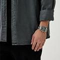 Мужские кварцевые часы Slazenger SL.09.2320.2.01 — это выразительный и функциональный аксессуар, сочетающий стиль, прочность и насыщенную комплектацию. Корпус и браслет выполнены из суперметалла, а циферблат частично скелетонизирован и оформлен в чёрных тонах, что позволяет наблюдать за работой механизма. Циферблат защищён минеральным стекломМинеральное стеклоМинеральное стекло представляет собой искусственно выращенный минерал кварца. Такое стекло отличается особой устойчивостью к повреждениям и царапинам. Уступает по некоторым качествам сапфировому стеклу. и дополнен вынесенными малыми циферблатами для индикации дня недели, даты и времени в 24-часовом формате. Стрелки и метки оснащены люминесцентным покрытиемЛюминесцентное покрытиеПозволяет считывать показания времени в темноте. Производители наносят на стрелки, часовые индексы, безель или поверхность циферблата светонакопительный состав, дающий холодное свечение., обеспечивающим хорошую читаемость в темноте. Завинчивающаяся задняя крышка повышает надёжность конструкции. Браслет из суперметалла фиксируется на раскладной застёжкеРаскладная застёжкаТакой тип застёжки используется только на браслетах из металла. Она никогда не раскрывается полностью, происходит разделение на 2 и более частей. Раскладывающая застёжка снизит вероятность потери часов к минимуму., обеспечивая удобство и безопасность ношения. Водонепроницаемость 50 м позволяет использовать часы в повседневных условиях, защищая от случайных брызг и капель дождя. Модель подчёркивает индивидуальность владельца и идеально подходит как для повседневного, так и для делового образа.