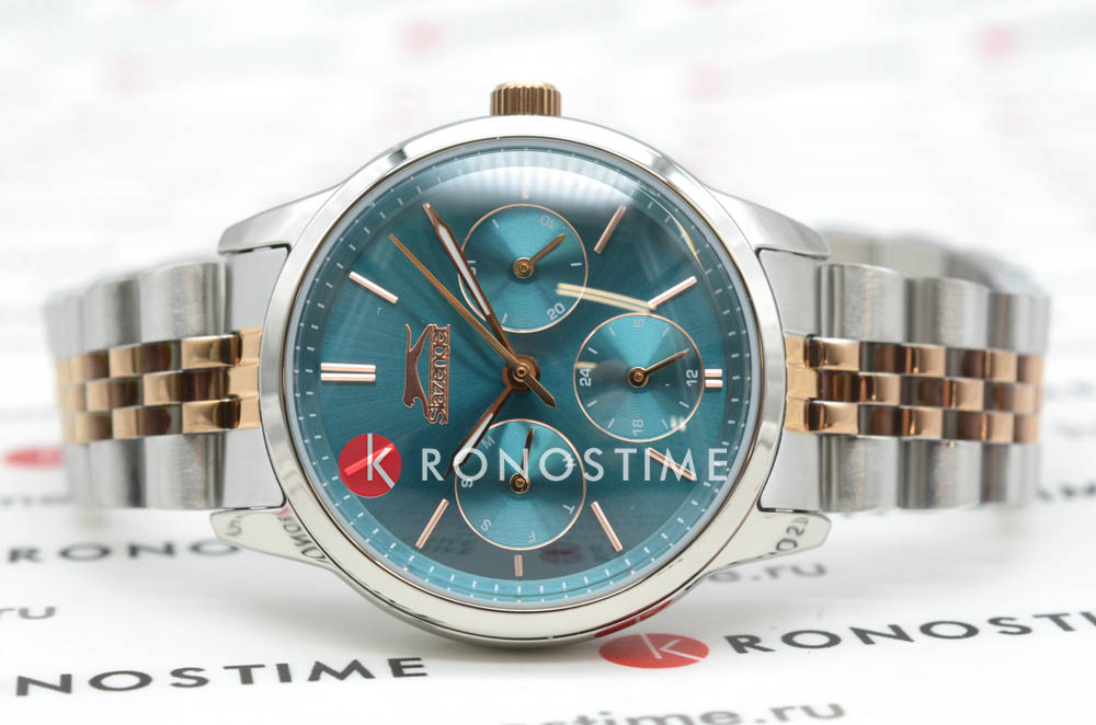 Женские наручные часы Slazenger SL.09.2336.4.03 сочетают в себе современный стиль и функциональность. Корпус выполнен из суперметалла, что придаёт модели дополнительную прочность и элегантный внешний вид. Циферблат защищён минеральным стекломМинеральное стеклоМинеральное стекло представляет собой искусственно выращенный минерал кварца. Такое стекло отличается особой устойчивостью к повреждениям и царапинам. Уступает по некоторым качествам сапфировому стеклу., устойчивым к царапинам и повреждениям. Часы оснащены дополнительными циферблатами, отображающими дату, день недели и 24-часовой формат времени, что добавляет практичности в повседневном использовании. Браслет из суперметалла с применением PVD-покрытияPVDУльтратонкое покрытие наносится в технике вакуумного напыления, сочетает в себе нитрид титана особой прочности со слоем золота или оксида хрома. Несёт в себе декоративную или защитную функцию. и раскладной застёжкойРаскладная застёжкаТакой тип застёжки используется только на браслетах из металла. Она никогда не раскрывается полностью, происходит разделение на 2 и более частей. Раскладывающая застёжка снизит вероятность потери часов к минимуму. обеспечивает надёжную фиксацию и комфорт при ношении. Эта модель идеально подходит для женщин, ценящих стиль, функциональность и надёжность в одном аксессуаре.