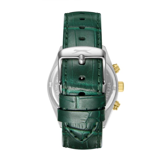 Мужские кварцевые часы Slazenger — это выразительный и функциональный аксессуар. Корпус диаметром 42 мм и толщиной 12 мм выполнен из нержавеющей стали 316L. Циферблат зелёного цвета оформлен индексами и стрелками. Циферблат защищён минеральным стекломМинеральное стеклоМинеральное стекло представляет собой искусственно выращенный минерал кварца. Такое стекло отличается особой устойчивостью к повреждениям и царапинам. Уступает по некоторым качествам сапфировому стеклу.. Механизм — кварцевый. Часы оснащены индикацией дня недели, даты, 12/24-часового формата времени и функцией второго часового пояса (GMT)Второй часовой поясФункция, позволяющая отображать время двух часовых поясов одновременно.. Окошко даты расположено между 4 и 5 часами. Стрелки и метки с люминесцентным покрытиемЛюминесцентное покрытиеПозволяет считывать показания времени в темноте. Производители наносят на стрелки, часовые индексы, безель или поверхность циферблата светонакопительный состав, дающий холодное свечение., обеспечивающим хорошую читаемость в темноте. Часы оснащены кожаным ремешком с стандартной застёжкой. Водонепроницаемость 100 м позволяет использовать часы для плавания и повседневного ношения. Гарантия — 12 месяцев. Идеальный выбор для тех, кто ценит стиль, функциональность и качество.