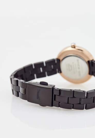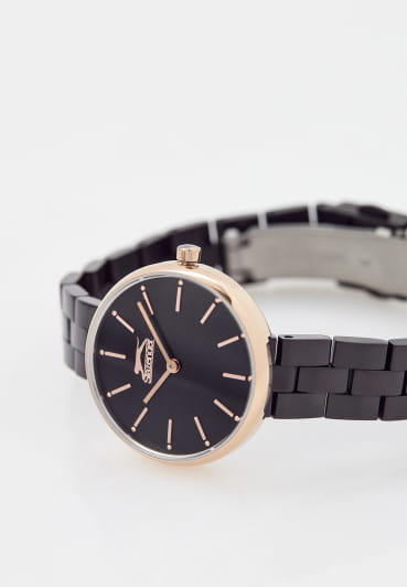 Женские кварцевые часы Slazenger — это элегантный аксессуар в миниатюрном корпусе. Корпус диаметром 30 мм и толщиной 8 мм выполнен из суперметалла с IP-покрытиемIP-покрытиеМетод ионного напыления. Демонстрирует повышенную устойчивость к истиранию, окислению и химическим веществам. Под воздействием высокого давления и температуры около 1500°C молекулы металла надёжно соединяются с частицами корпуса часов.. Циферблат чёрного цвета оформлен индексами и стрелками. Циферблат защищён минеральным стекломМинеральное стеклоМинеральное стекло представляет собой искусственно выращенный минерал кварца. Такое стекло отличается особой устойчивостью к повреждениям и царапинам. Уступает по некоторым качествам сапфировому стеклу.. Механизм — кварцевый калибр Y120. Часы оснащены браслетом из суперметалла на раскладной застёжкеРаскладная застёжкаТакой тип застёжки используется только на браслетах из металла. Она никогда не раскрывается полностью, происходит разделение на 2 и более частей. Раскладывающая застёжка снизит вероятность потери часов к минимуму.. Водонепроницаемость 30 м позволяет использовать часы в повседневных условиях. Идеальный выбор для тех, кто ценит стиль и качество.