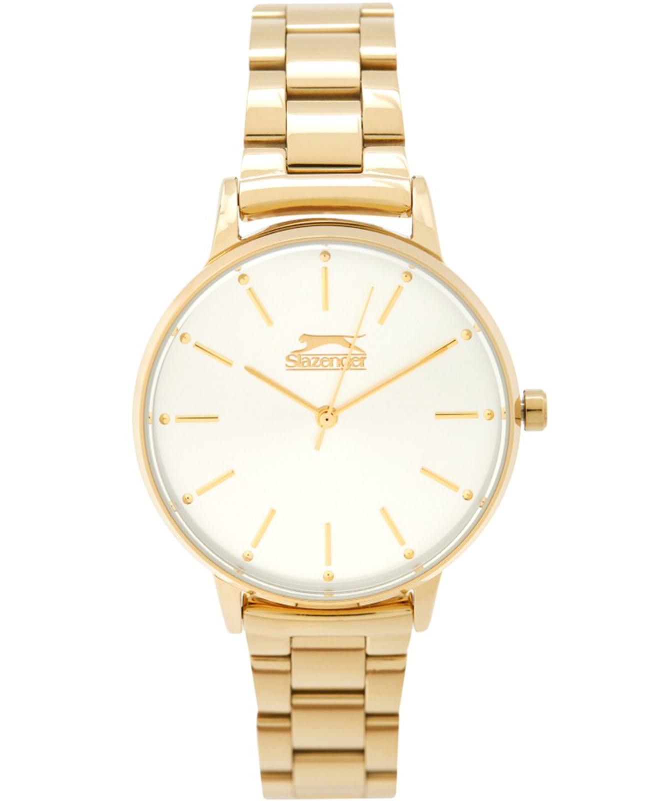 Женские кварцевые часы Slazenger — это элегантный аксессуар. Корпус диаметром 36 мм и толщиной 9 мм выполнен из суперметалла с IP-покрытиемIP-покрытиеМетод ионного напыления. Демонстрирует повышенную устойчивость к истиранию, окислению и химическим веществам. Под воздействием высокого давления и температуры около 1500°C молекулы металла надёжно соединяются с частицами корпуса часов.. Циферблат серебристого цвета оформлен индексами и стрелками. Циферблат защищён минеральным стекломМинеральное стеклоМинеральное стекло представляет собой искусственно выращенный минерал кварца. Такое стекло отличается особой устойчивостью к повреждениям и царапинам. Уступает по некоторым качествам сапфировому стеклу.. Механизм — кварцевый калибр Miyota 2035. Часы оснащены браслетом из суперметалла на раскладной застёжкеРаскладная застёжкаТакой тип застёжки используется только на браслетах из металла. Она никогда не раскрывается полностью, происходит разделение на 2 и более частей. Раскладывающая застёжка снизит вероятность потери часов к минимуму.. Водонепроницаемость 30 м позволяет использовать часы в повседневных условиях. Идеальный выбор для тех, кто ценит стиль и качество.