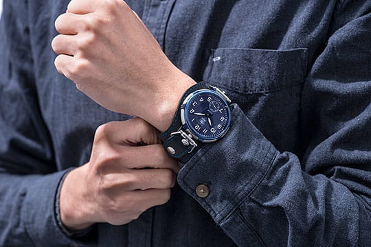 Водозащита 100 метров (10 ATM) позволяет использовать часы для плавания и других водных видов спорта. Ремешок из натуральной кожи со стандартной застёжкой обеспечивает комфортное ношение и надёжную фиксацию на запястье.