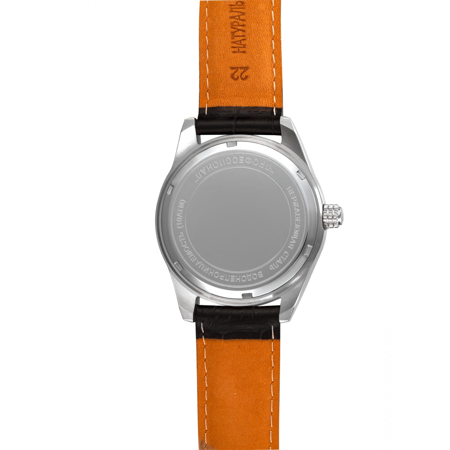 Водозащита 100 метров (10 ATM) позволяет использовать часы для плавания и других водных видов спорта. Ремешок из натуральной кожи со стандартной застёжкой обеспечивает комфортное ношение и надёжную фиксацию на запястье.