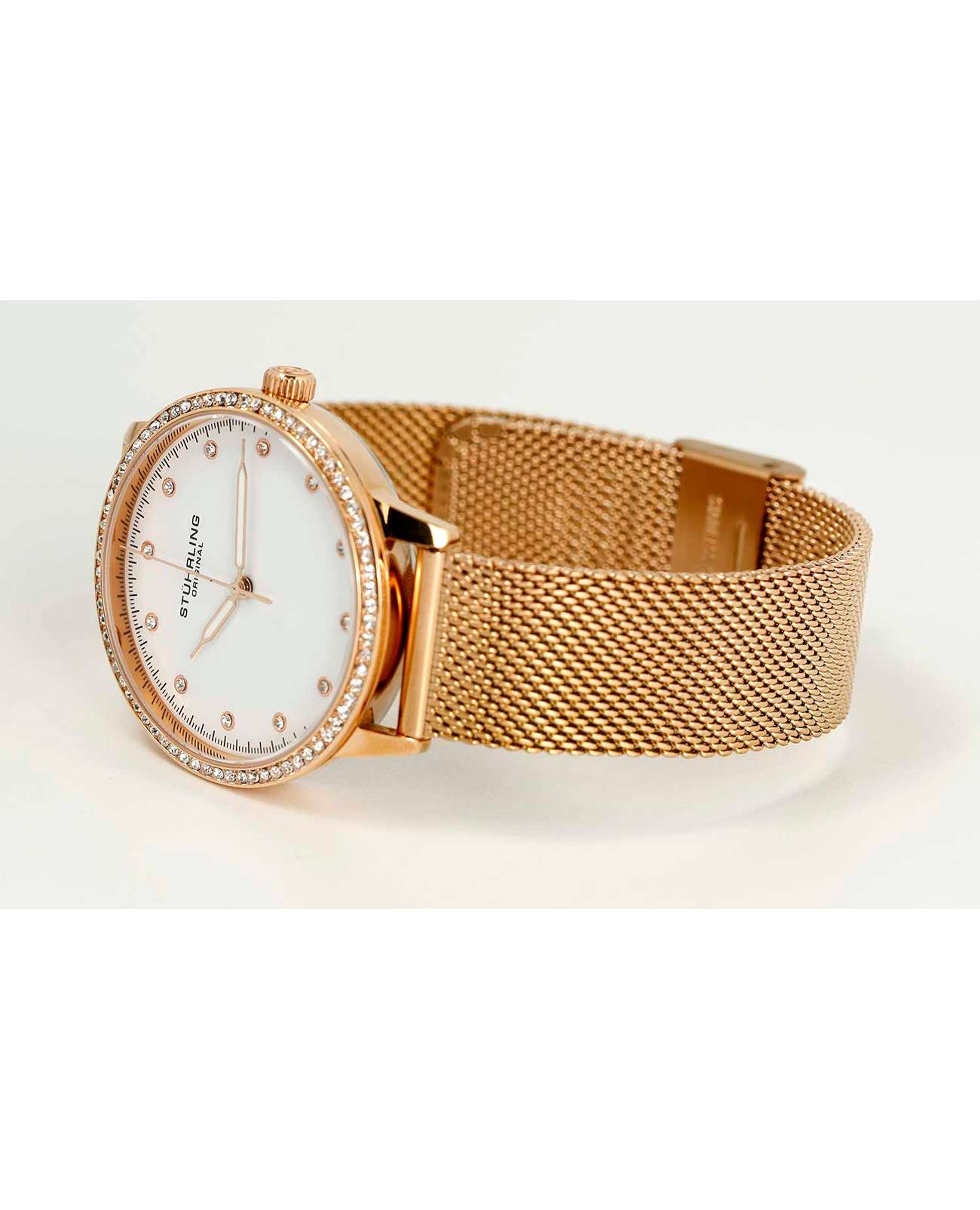 Женские наручные часы Stührling Original 3904.4 — это элегантная модель, сочетающая классический дизайн и современные технологии . Часы относятся к категории dress watch (деловые часы), что делает их идеальным выбором для повседневного использования или особых случаев. Корпус часов диаметром 38 мм изготовлен из высококачественной нержавеющей стали с PVD-покрытиемPVDУльтратонкое покрытие наносится в технике вакуумного напыления, сочетает в себе нитрид титана особой прочности со слоем золота или оксида хрома. Несёт в себе декоративную или защитную функцию. под золото, что подчеркивает элегантность модели . Толщина корпуса составляет всего 8,25 мм, что делает модель изящной и комфортной для ношения . Защиту циферблата обеспечивает прочное стекло KrysternaKrysternaKrysterna — инновационное стекло для наручных часов. Благодаря уникальной структуре, Krysterna объединяет ключевые преимущества двух материалов: твердость сапфира, защищающую от царапин, и гибкость минерального стекла, обеспечивающую устойчивость к деформациям. Такая комбинация делает его идеальным решением для часов, подверженных экстремальным нагрузкам, сохраняя при этом оптическую прозрачность., известное своей устойчивостью к царапинам и механическим повреждениям. Браслет миланского плетения из того же матеариала на раскладном замкеРаскладной замокДанный вариант застежки используется только на часах с металлическим браслетом. Отличительная особенность такого крепления в том, что длина браслета становится универсальной и вы можете самостоятельно отрегулировать нужный вам размер – застежка просто двигается по браслету часов.. Часы оснащены кварцевым механизмом, обеспечивающим точность хода без необходимости ручного завода. Эта модель станет стильным аксессуаром для женщин, ценящих элегантность и практичность в повседневной жизни.