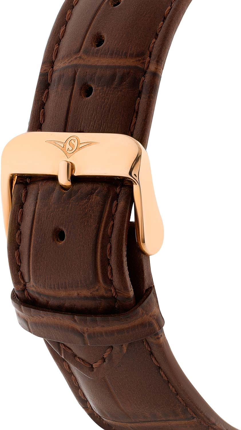 Stuhrling 3933.4 — эффектные мужские часы с открытым механическим сердцем, воплощающие искусство часового мастерства. Полностью скелетонизированный циферблат демонстрирует работу механизма, подчёркивая эстетику точности и движения. Корпус из нержавеющей стали с PVD-покрытиемPVDУльтратонкое покрытие наносится в технике вакуумного напыления, сочетает в себе нитрид титана особой прочности со слоем золота или оксида хрома. Несёт в себе декоративную или защитную функцию. гармонирует с ремнём из натуральной кожи, придавая модели классическую солидность. Металлизированные стрелки и метки обеспечивают читаемость, а прочное стекло KrysternaKrysternaKrysterna — инновационное стекло для наручных часов. Благодаря уникальной структуре, Krysterna объединяет ключевые преимущества двух материалов: твердость сапфира, защищающую от царапин, и гибкость минерального стекла, обеспечивающую устойчивость к деформациям. Такая комбинация делает его идеальным решением для часов, подверженных экстремальным нагрузкам, сохраняя при этом оптическую прозрачность. надёжно защищает конструкцию от повреждений. Stuhrling — это сочетание прозрачной механики, изысканного дизайна и утончённого стиля для ценителей настоящей инженерной красоты.