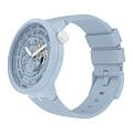 Часы Swatch SB03N100 — это стильный и современный аксессуар для тех, кто ценит лёгкость и комфорт. Часы идеально подойдут как для мужчин, так и для женщин. Прекрасный образец часов, выполненных полностью из материалов биологического происхождения: открытый механизм и биокерамикаБиокерамикаБиокерамика — это материал, который на две трети состоит из керамики, на одну треть — из биопластика. Он сочетает в себе лучшие качества обоих материалов и обладает прочностью и шелковистой на ощупь текстурой., которая создает ощущение шелковистости. Впечатляющий дизайн голубого цвета — инновация в своем лучшем проявлении. На часовую, минутную стрелки нанесено люминесцентное покрытиеЛюминесцентное покрытиеПозволяет считывать показания времени в темноте. Производители наносят на стрелки, часовые индексы, безель или поверхность циферблата светонакопительный состав, дающий холодное свечение., которое светится в темноте, создавая необычное изображение. Водозащита 30 метров делает часы практичными для повседневного использования. Эти часы подойдут для повседневного ношения и станут ярким акцентом в вашем наряде.