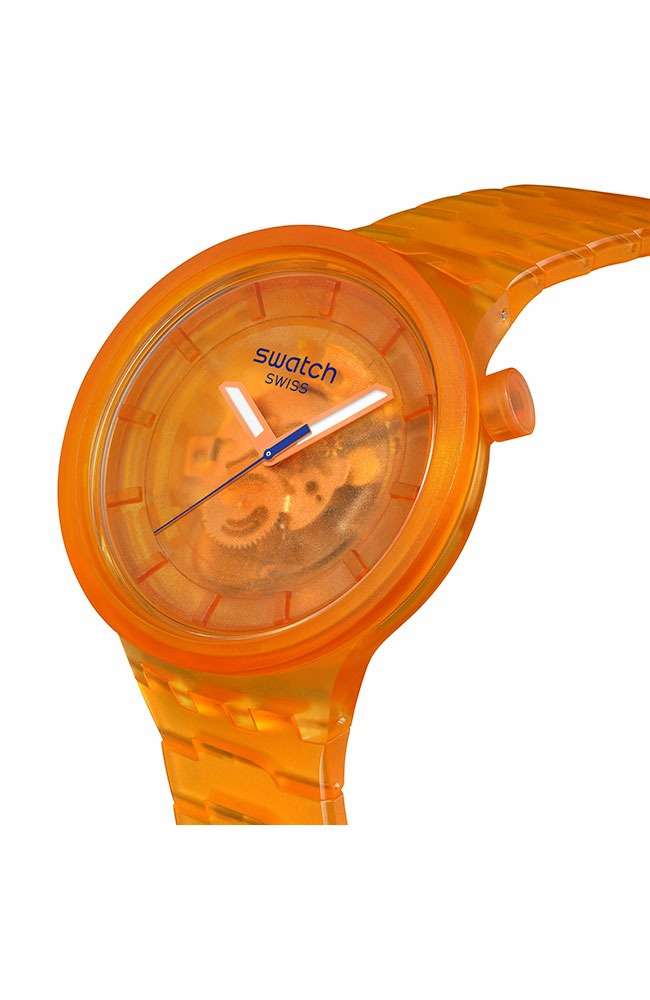 Часы Swatch SB05O103 — это стильный и современный аксессуар для тех, кто ценит лёгкость и комфорт. Часы идеально подойдут как для мужчин, так и для женщин. Эти большие часы оранжевого цвета могут похвастаться прозрачным корпусом и циферблатом оранжевого оттенка, изготовленными из биосодержащих материалов, и браслетом с застежкой-бабочкойЗастёжка "бабочка"Такой вид застёжки дополняется предохранителями, помогающими избежать случайного раскрытия браслета. Обладают изящным исполнением. . Прозрачный оранжевый циферблат с биологическим покрытием позволяет видеть механизм, а на часовую и минутную стрелки нанесено люминесцентное покрытиеЛюминесцентное покрытиеПозволяет считывать показания времени в темноте. Производители наносят на стрелки, часовые индексы, безель или поверхность циферблата светонакопительный состав, дающий холодное свечение., которое светится в темноте, создавая необычное изображение. Водозащита 30 метров делает часы практичными для повседневного использования. Эти часы подойдут для повседневного ношения и станут ярким акцентом в вашем наряде.