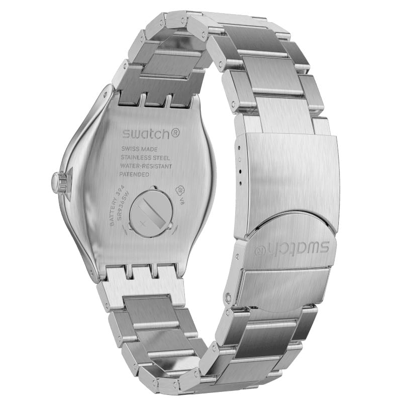 Часы Swatch YWS439G — это стильный и современный аксессуар для тех, кто ценит лёгкость и комфорт. Часы идеально подойдут как для мужчин, так и для женщин. Черный циферблат этой модели украшен бело-серебристыми индексами и стрелками с люминесцентным покрытиемЛюминесцентное покрытиеПозволяет считывать показания времени в темноте. Производители наносят на стрелки, часовые индексы, безель или поверхность циферблата светонакопительный состав, дающий холодное свечение., желтой секундной стрелкой, а также окошком даты у отметки «3 часа». Дизайн часов дополняют регулируемый браслет с застёжкой «бабочка»Застёжка "бабочка"Такой вид застёжки дополняется предохранителями, помогающими избежать случайного раскрытия браслета. Обладают изящным исполнением. и корпус из нержавеющей стали с пескоструйной обработкой. Водозащита 30 метров делает часы практичными для повседневного использования. Эти часы подойдут для повседневного ношения и станут ярким акцентом в вашем наряде.