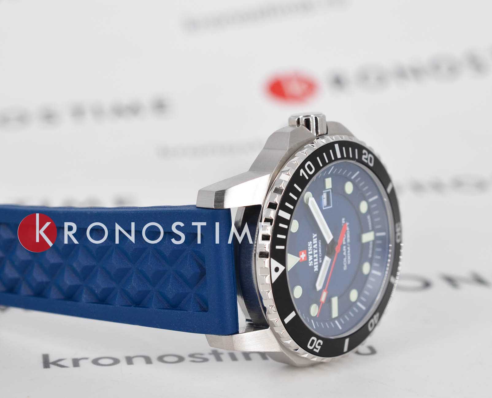 Модель SMS34102.04 от Swiss Military by Chrono — это надёжные швейцарские спортивные часы, сочетающие в себе прочность, функциональность и элегантный дизайн. Корпус выполнен из нержавеющей стали, подчёркивая прочность и элегантность конструкции. Циферблат с солнечным узором и крупными метками, покрытыми люминесцентным покрытиемЛюминесцентное покрытиеПозволяет считывать показания времени в темноте. Производители наносят на стрелки, часовые индексы, безель или поверхность циферблата светонакопительный состав, дающий холодное свечение., обеспечивает отличную читаемость в любых условиях. Часы оснащены швейцарским солнечным кварцевым механизмом Ronda Solartech Caliber 215, обеспечивающим точный ход и запас хода до 8 месяцев без подзарядки. Циферблат защищён сапфировым стекломСапфировое стеклоПрочный и надёжный материал из кристалла сапфира синтетического происхождения, характеризующийся особой твёрдостью и устойчивостью к царапинам и повреждениям., устойчивым к царапинам. Силиконовый ремешок на стандартной застежке для надёжной фиксации на запястье. Односторонний вращающийся безель с PVD-покрытиемPVDУльтратонкое покрытие наносится в технике вакуумного напыления, сочетает в себе нитрид титана особой прочности со слоем золота или оксида хрома. Несёт в себе декоративную или защитную функцию. позволяет точно отслеживать время. Модель обладает водонепроницаемостью до 100 метров, что делает её подходящей для плавания и сноркелинга.