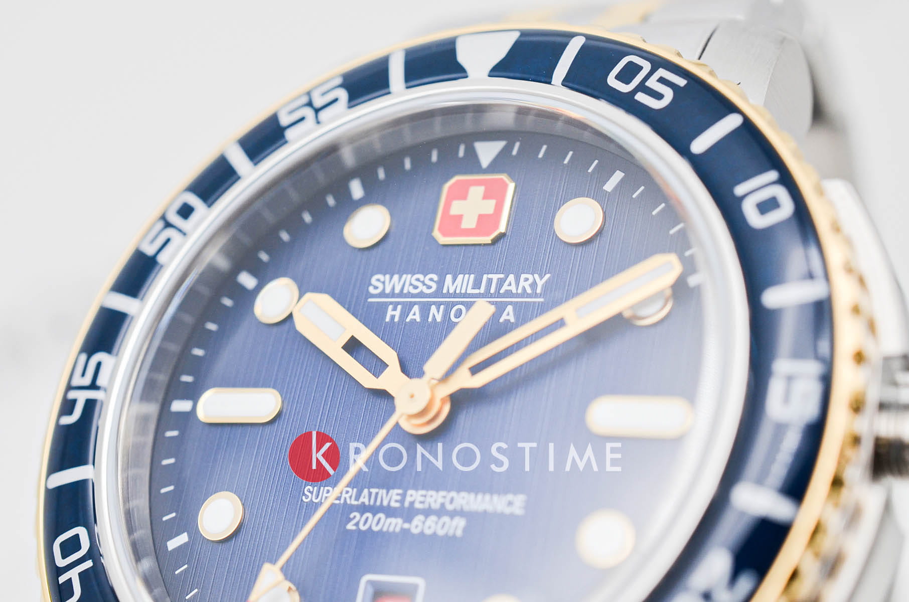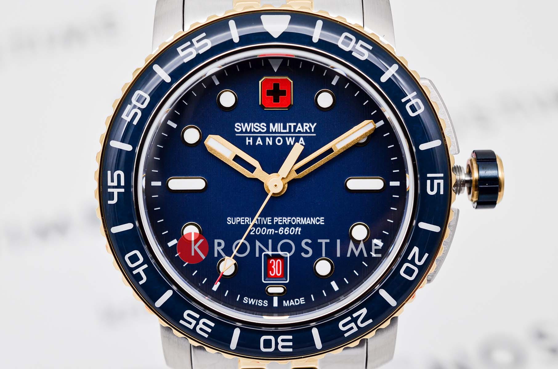 Мужские швейцарские часы с сапфировым стекломСапфировое стеклоПрочный и надёжный материал из кристалла сапфира синтетического происхождения, характеризующийся особой твёрдостью и устойчивостью к царапинам и повреждениям. Swiss Military Hanowa Black Marlin SMWGH0001760, кварцевый механизм с высокой точностью. Сапфировое стеклоСапфировое стеклоПрочный и надёжный материал из кристалла сапфира синтетического происхождения, характеризующийся особой твёрдостью и устойчивостью к царапинам и повреждениям. устойчивое к появлению царапин, обладающее высокой прозрачностью. Корпус часов изготовлен из стали. Вращающийся безельБезельВнешний ободок, закрепляющий стекло. В спортивных часах так называется поворотное кольцо с делениями на циферблате, выполняет роль таймера – замеряет отрезки времени на шкале. Неподвижный безель – элемент декора. Однонаправленно вращающийся безель на дайверских часах позволяет фиксировать моменты погружения и выныривания на поверхность. из стали PVD-покрытиемPVDУльтратонкое покрытие наносится в технике вакуумного напыления, сочетает в себе нитрид титана особой прочности со слоем золота или оксида хрома. Несёт в себе декоративную или защитную функцию. и керамики. Центральные часовая и минутная стрелки, секундная стрелка вынесена на малый циферблат. Окошко даты находится в положении 6 часов. Стрелки и метки с люминесцентным покрытиемЛюминесцентное покрытиеПозволяет считывать показания времени в темноте. Производители наносят на стрелки, часовые индексы, безель или поверхность циферблата светонакопительный состав, дающий холодное свечение.. Класс водозащиты: 200 метров, позволит плавать, нырять и заниматься другими водными видами спорта. Стальной браслет с частичным PVD-покрытиемPVDУльтратонкое покрытие наносится в технике вакуумного напыления, сочетает в себе нитрид титана особой прочности со слоем золота или оксида хрома. Несёт в себе декоративную или защитную функцию.на раскладной застёжкеРаскладная застёжкаТакой тип застёжки используется только на браслетах из металла. Она никогда не раскрывается полностью, происходит разделение на 2 и более частей. Раскладывающая застёжка снизит вероятность потери часов к минимуму..