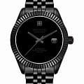Часы Swiss Military Hanowa Dark Night SMWGL0005530— это образец швейцарской точности и изысканного стиля. Эти механические часы с автоподзаводом оснащены калибром Soprod P024, который обеспечивает надежную работу механизма. Элегантный корпус диаметром 41 мм выполнен из прочной стали с черным IP-покрытиемIP-покрытиеМетод ионного напыления. Демонстрирует повышенную устойчивость к истиранию, окислению и химическим веществам. Под воздействием высокого давления и температуры около 1500°C молекулы металла надёжно соединяются с частицами корпуса часов. и украшен рифленым безелемБезельВнешний ободок, закрепляющий стекло. В спортивных часах так называется поворотное кольцо с делениями на циферблате, выполняет роль таймера – замеряет отрезки времени на шкале. Неподвижный безель – элемент декора. Однонаправленно вращающийся безель на дайверских часах позволяет фиксировать моменты погружения и выныривания на поверхность.. Черный циферблат защищен  сапфировым стекломСапфировое стеклоПрочный и надёжный материал из кристалла сапфира синтетического происхождения, характеризующийся особой твёрдостью и устойчивостью к царапинам и повреждениям., которое устойчиво к царапинам и сохраняет безупречный вид. Стрелки имеют люминесцентное покрытиеЛюминесцентное покрытиеПозволяет считывать показания времени в темноте. Производители наносят на стрелки, часовые индексы, безель или поверхность циферблата светонакопительный состав, дающий холодное свечение., которое обеспечивает видимость в темноте после кратковременной зарядки на свету. Окошко даты с увеличительным стеклом расположено в положении 3 часа, а фирменный логотип Swiss Military Hanowa находится в позиции 12 часов. Заводная головка с рифлением украшена фирменным логотипом, добавляя часам изысканный акцент. Прозрачная задняя крышка позволяет наблюдать за работой механизма, подчеркивая внимание к деталям. Завершает образ стальной браслет с черным IP-покрытиемIP-покрытиеМетод ионного напыления. Демонстрирует повышенную устойчивость к истиранию, окислению и химическим веществам. Под воздействием высокого давления и температуры около 1500°C молекулы металла надёжно соединяются с частицами корпуса часов. и раскладной застёжкойРаскладная застёжкаТакой тип застёжки используется только на браслетах из металла. Она никогда не раскрывается полностью, происходит разделение на 2 и более частей. Раскладывающая застёжка снизит вероятность потери часов к минимуму., который удобно сидит на запястье и обеспечивает надежную фиксацию. Часы обладают водозащитой уровня 100WR, что делает их подходящими для повседневного использования и активного образа жизни.
