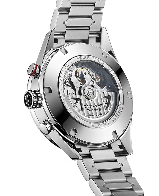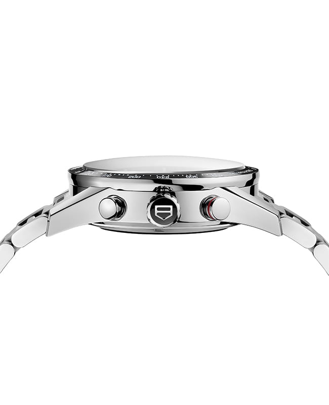 Стильный циферблат, заключенный в прочный корпус с неподвижным керамическим безелем с тахиметромТахиметрРазмеченная шкала, располагается на ободке или безеле часов. Тахиметр позволяет рассчитать скорость на определённом участке пути, расстояние измеряется в километрах или милях., подчеркивает его неподвластную времени элегантность. TAG Heuer Carrera CV2A1S.BA0799 с хронографомХронографФункция позволяет измерять отрезки времени с особой точностью: часы, минуты, секунды. Верным признаком хронографа является наличие на циферблате 3 дополнительных окошек-счётчиков., механизм - Calibre 16. Запас хода на 42 часа.. Сапфировое стеклоСапфировое стеклоПрочный и надёжный материал из кристалла сапфира синтетического происхождения, характеризующийся особой твёрдостью и устойчивостью к царапинам и повреждениям. устойчивое к появлению царапин, обладающее высокой прозрачностью. Класс водозащиты: 100 метров, позволит плавать, нырять и заниматься другими водными видами спорта. Корпус часов изготовлен из стали. Стрелки с покрытием Super-LumiNova позволяют легко считывать время при любых обстоятельствах. Отображение даты.
