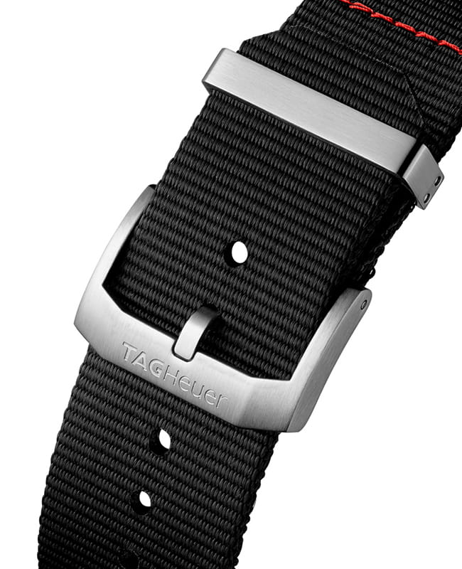 Выполненный в гоночной тематике хронограф с кварцевым механизмом, черным опаловым циферблатом, белым фланцем и белыми опаловыми вспомогательными циферблатами в положениях «3 часа»,«6 часов» и «9 часов». Стрелки вспомогательного циферблата огненно-красного цвета с эффектным покрытием из черного золота. Серебристые часовые индексы, часовые и минутные стрелки с белым люминесцентным покрытием Super-LumiNova® для превосходной читаемости показаний при слабом освещении.