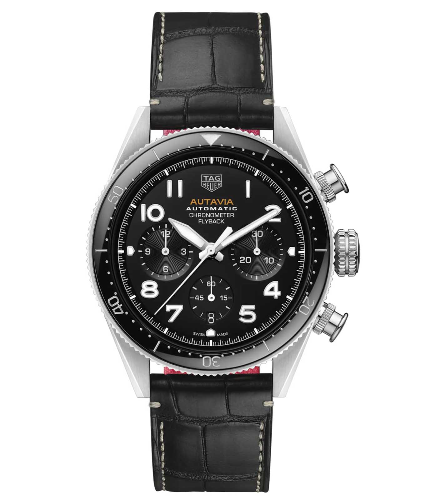 Новые мужские часы-хронографХронографФункция позволяет измерять отрезки времени с особой точностью: часы, минуты, секунды. Верным признаком хронографа является наличие на циферблате 3 дополнительных окошек-счётчиков. Autavia диаметром 42 мм отличаются непринужденным и эффектным дизайном и отлично подходят для повседневного использования. Оснащенные сверхточным хронометром Calibre Heuer 02 Flyback, сертифицированным COSCСертификат COSCОфициальный сертификат, подтверждающий то, что часы ходят с особо высокой точностью. Для получения документа часы подвергаются тестовым испытаниям, разработанным швейцарским институтом тестирования хронометров COSC. Допустимая норма для механических часов -4/+6 секунд в день, для кварцевых моделей +/- 0,07 секунд в день., эти заново изобретенные часы подходят для героических приключений. Механический механизм (автоматический калибр) с высокой точностью. Циферблат с люминесцентным покрытиемЛюминесцентное покрытиеПозволяет считывать показания времени в темноте. Производители наносят на стрелки, часовые индексы, безель или поверхность циферблата светонакопительный состав, дающий холодное свечение. стрелок и меток, дополнен сапфировым стекломСапфировое стеклоПрочный и надёжный материал из кристалла сапфира синтетического происхождения, характеризующийся особой твёрдостью и устойчивостью к царапинам и повреждениям., устойчивым к появлению царапин и обладающее высокой прозрачностью. Корпус часов изготовлен из стали, серебристого цвета. Классический черный циферблат в стиле кокпита невероятно удобочитаем благодаря ярким часовым меткам, стрелкам и индексам с белым покрытием Super-LumiNova®. Водонепроницаемость до 100 метров, прочный стальной корпус оснащен прочным черным керамическим безелем и подходящим черным ремешком из кожи аллигатора.