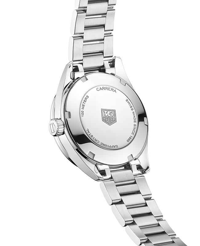 Женские швейцарские часы TAG Heuer Carrera WAR1315.BA0778, кварцевый механизм с высокой точностью. Сапфировое стекло устойчивое к появлению царапин, обладающее высокой прозрачностью. Класс водозащиты: 100 метров, позволит плавать, нырять и заниматься другими водными видами спорта. Корпус часов изготовлен из стали, серебристого цвета.