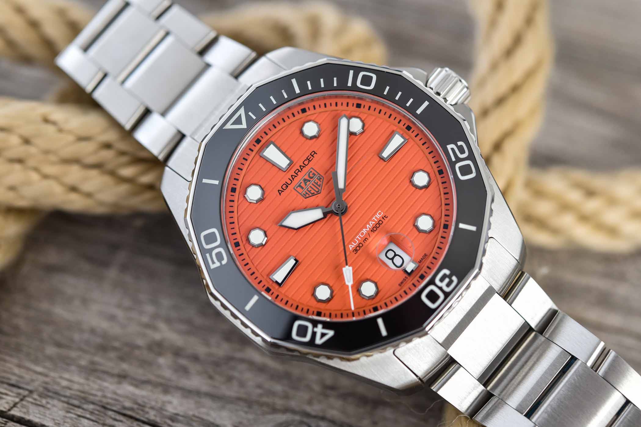 Дизайн часов TAG Heuer Aquaracer вдохновлен классической моделью 1979 года. Эти дерзкие оранжевые часы для дайвинга в стальном 43-миллиметровом корпусе готовы выдержать любые условия. Идеальный спутник для ваших свершений, полных адреналина. Мужские механические швейцарские часы с автоподзаводом TAG Heuer Aquaracer Professional 300 Orange Diver WBP201F.BA0632, механический механизм (автоматический калибр) с высокой точностью. Сапфировое стеклоСапфировое стеклоПрочный и надёжный материал из кристалла сапфира синтетического происхождения, характеризующийся особой твёрдостью и устойчивостью к царапинам и повреждениям. устойчивое к появлению царапин, обладающее высокой прозрачностью. Класс водозащиты: 300 метров, позволит плавать, нырять и заниматься другими водными видами спорта. Корпус часов изготовлен из стали. Функциональный и элегантный корпус часов TAG Heuer Aquaracer отличается высокой эргономичностью и готов к любым испытаниям. Стальной браслет на раскладной застёжкеРаскладная застёжкаТакой тип застёжки используется только на браслетах из металла. Она никогда не раскрывается полностью, происходит разделение на 2 и более частей. Раскладывающая застёжка снизит вероятность потери часов к минимуму. с точной системой регулировки и высококачественной надежной застежкой прослужит долгие годы. Оранжевый – цвет безопасности в море, а яркие тона обеспечивают максимальный контраст с голубизной воды. Циферблат, созданный, чтобы выделяться. Вращающийся в одном направлении керамический безельБезельВнешний ободок, закрепляющий стекло. В спортивных часах так называется поворотное кольцо с делениями на циферблате, выполняет роль таймера – замеряет отрезки времени на шкале. Неподвижный безель – элемент декора. Однонаправленно вращающийся безель на дайверских часах позволяет фиксировать моменты погружения и выныривания на поверхность..
