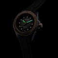 Механический механизм (автоматический калибр) с высокой точностью. Сапфировое стеклоСапфировое стеклоПрочный и надёжный материал из кристалла сапфира синтетического происхождения, характеризующийся особой твёрдостью и устойчивостью к царапинам и повреждениям. устойчивое к появлению царапин, обладающее высокой прозрачностью. Стрелки с люминесцентным покрытиемЛюминесцентное покрытиеПозволяет считывать показания времени в темноте. Производители наносят на стрелки, часовые индексы, безель или поверхность циферблата светонакопительный состав, дающий холодное свечение.. Класс водозащиты: 200 метров, позволит плавать, нырять и заниматься другими водными видами спорта. Корпус часов изготовлен из нержавеющей стали. Каучуковый ремешок с раскладной застёжкойРаскладная застёжкаТакой тип застёжки используется только на браслетах из металла. Она никогда не раскрывается полностью, происходит разделение на 2 и более частей. Раскладывающая застёжка снизит вероятность потери часов к минимуму..