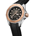 Часы TAG Heuer Aquaracer Professional 200 WBP2450.FT6215. Сочетая в себе прочность розового золота и универсальность черного каучукового ремешка, этот роскошный TAG Heuer Aquaracer отличается спортивной элегантностью. Сверкающие бриллианты диаметром 1,4 мм (0,107 карата). Очень разборчивые благодаря светящимся позолоченным стрелкам и индексам, великолепно контрастирующим с черным циферблатом, эти эффектные часы готовы к крайностям.