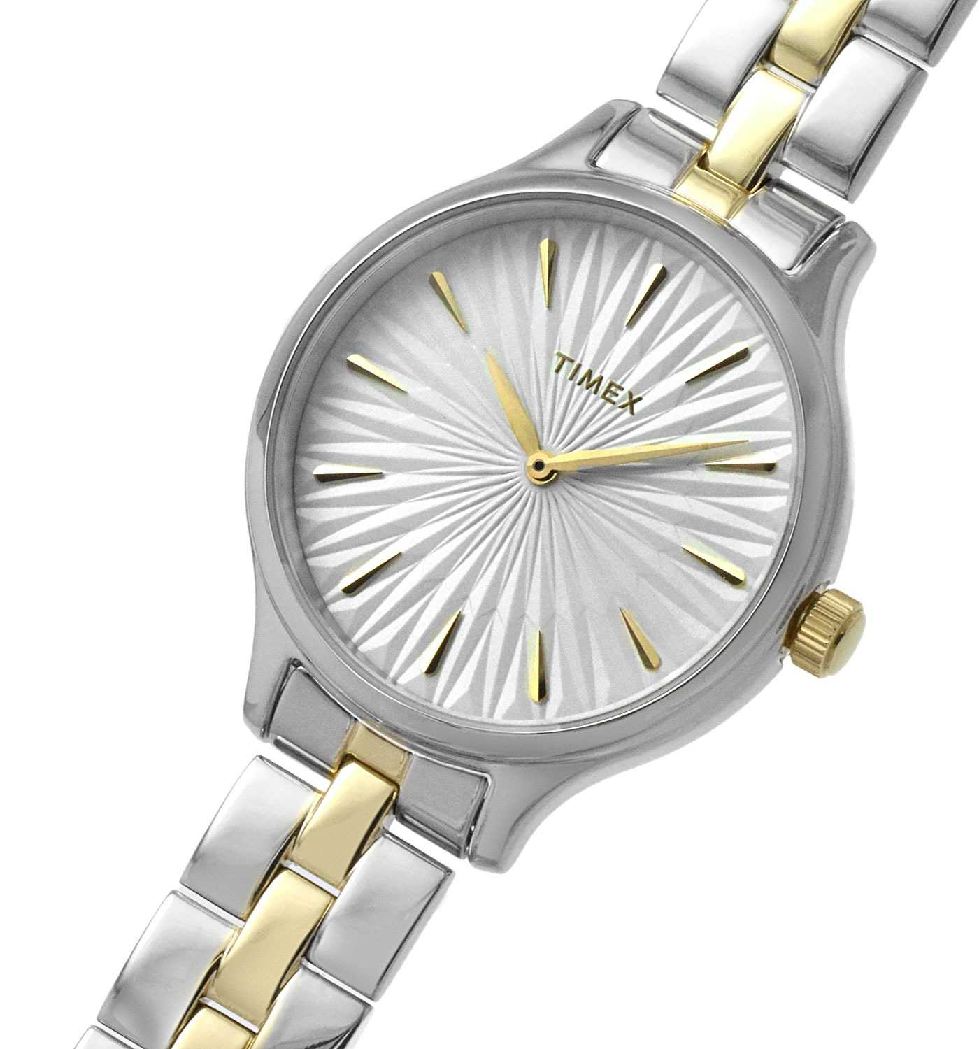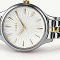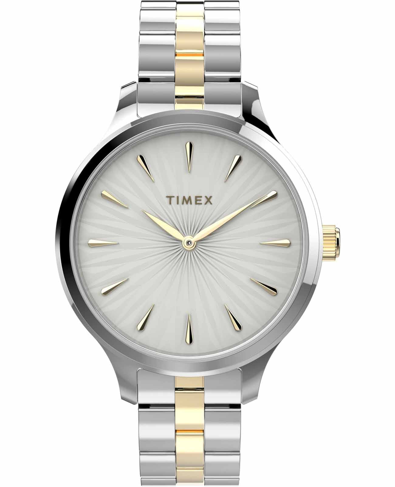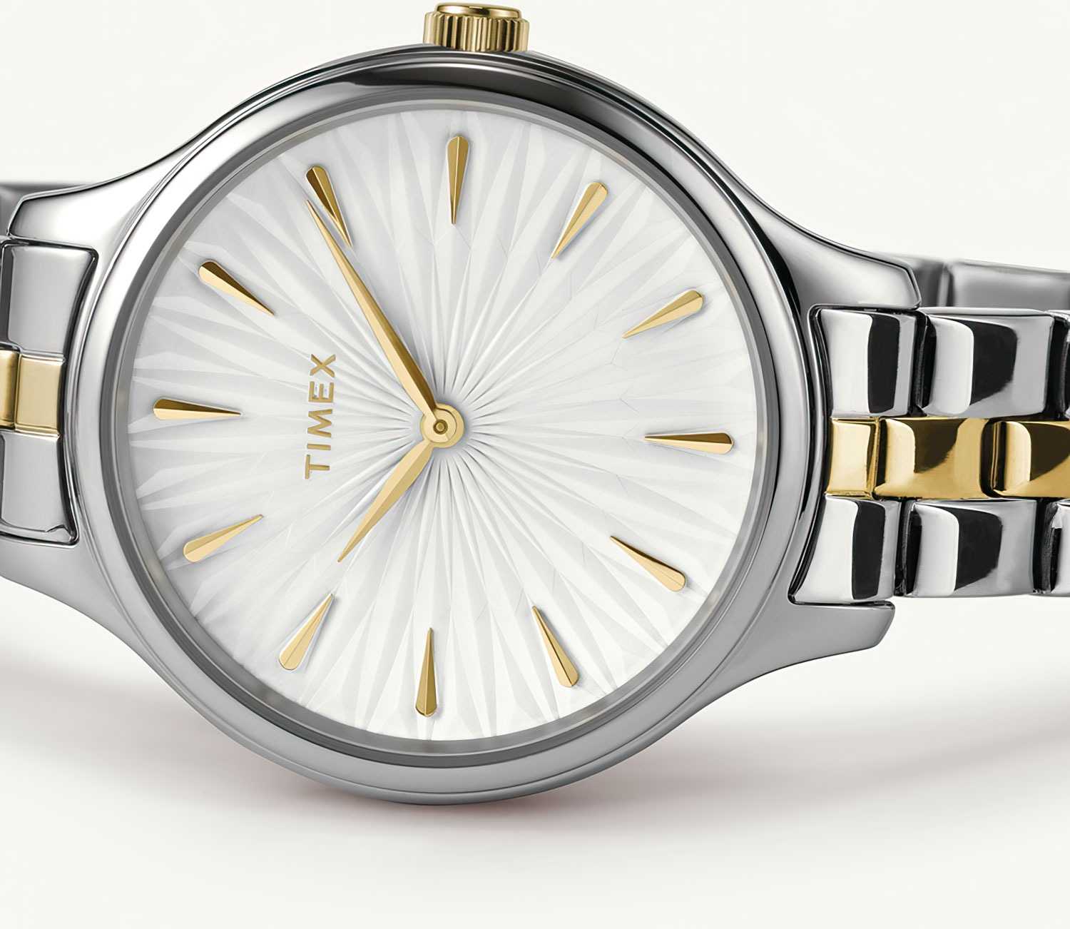 Наручные часы Timex TW2V06500 — это изящный аксессуар, который подчеркнет превосходный вкус своей обладательницы. Изготовленные в США, эти практичные женские часы оснащены надежным кварцевым механизмом, обеспечивающим точность хода. Корпус часов выполнен из латуни, которое придает изделию изысканный и современный вид. Белый циферблат украшен рельефным декоративным узором и оснащен листовидными стрелками в стиле Feuille, что обеспечивает элегантный внешний вид. Метки в виде штрихов и отсутствие секундной стрелки придают модели минималистичный стиль. Часы оснащены рифленой заводной головкой и надежным стальным браслетом с  частичным PVDPVDУльтратонкое покрытие наносится в технике вакуумного напыления, сочетает в себе нитрид титана особой прочности со слоем золота или оксида хрома. Несёт в себе декоративную или защитную функцию. покрытием, который имеет раскладную застёжкуРаскладная застёжкаТакой тип застёжки используется только на браслетах из металла. Она никогда не раскрывается полностью, происходит разделение на 2 и более частей. Раскладывающая застёжка снизит вероятность потери часов к минимуму.  для комфортной посадки на запястье. Водозащита 30WR позволяет носить часы в различных условиях, защищая их от случайных брызг. Минеральное стеклоМинеральное стеклоМинеральное стекло представляет собой искусственно выращенный минерал кварца. Такое стекло отличается особой устойчивостью к повреждениям и царапинам. Уступает по некоторым качествам сапфировому стеклу. защищает циферблат от царапин и повреждений, сохраняя его первозданный вид. Размеры корпуса составляют 36 мм в диаметре, а ширина браслета — 14 мм, что делает часы элегантными и подходящими для любого случая.