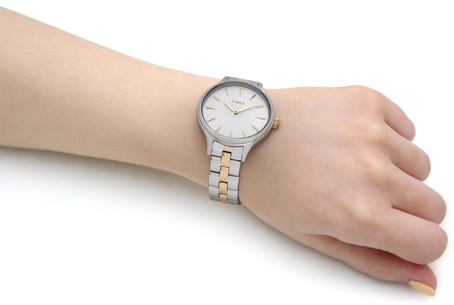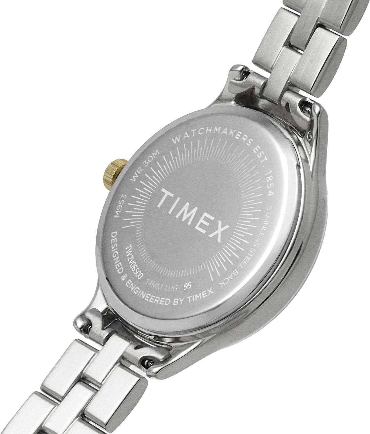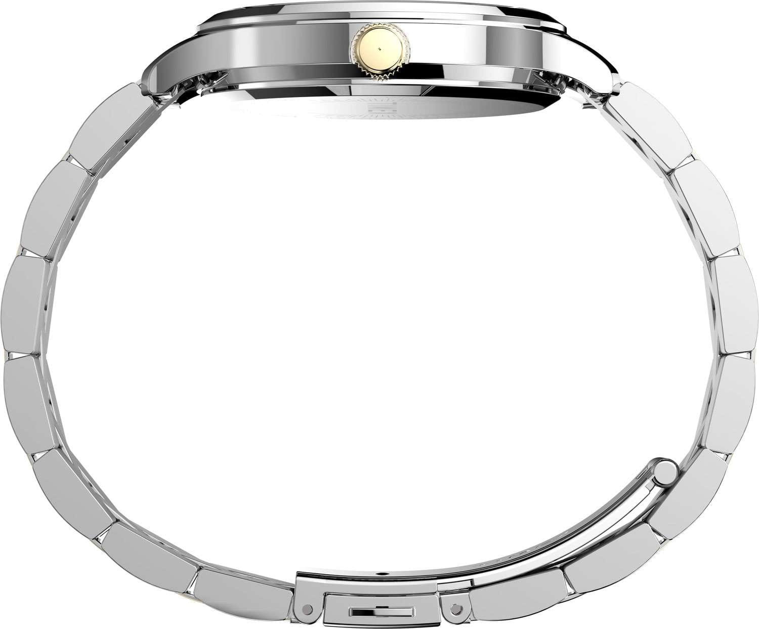Наручные часы Timex TW2V06500 — это изящный аксессуар, который подчеркнет превосходный вкус своей обладательницы. Изготовленные в США, эти практичные женские часы оснащены надежным кварцевым механизмом, обеспечивающим точность хода. Корпус часов выполнен из латуни, которое придает изделию изысканный и современный вид. Белый циферблат украшен рельефным декоративным узором и оснащен листовидными стрелками в стиле Feuille, что обеспечивает элегантный внешний вид. Метки в виде штрихов и отсутствие секундной стрелки придают модели минималистичный стиль. Часы оснащены рифленой заводной головкой и надежным стальным браслетом с  частичным PVDPVDУльтратонкое покрытие наносится в технике вакуумного напыления, сочетает в себе нитрид титана особой прочности со слоем золота или оксида хрома. Несёт в себе декоративную или защитную функцию. покрытием, который имеет раскладную застёжкуРаскладная застёжкаТакой тип застёжки используется только на браслетах из металла. Она никогда не раскрывается полностью, происходит разделение на 2 и более частей. Раскладывающая застёжка снизит вероятность потери часов к минимуму.  для комфортной посадки на запястье. Водозащита 30WR позволяет носить часы в различных условиях, защищая их от случайных брызг. Минеральное стеклоМинеральное стеклоМинеральное стекло представляет собой искусственно выращенный минерал кварца. Такое стекло отличается особой устойчивостью к повреждениям и царапинам. Уступает по некоторым качествам сапфировому стеклу. защищает циферблат от царапин и повреждений, сохраняя его первозданный вид. Размеры корпуса составляют 36 мм в диаметре, а ширина браслета — 14 мм, что делает часы элегантными и подходящими для любого случая.