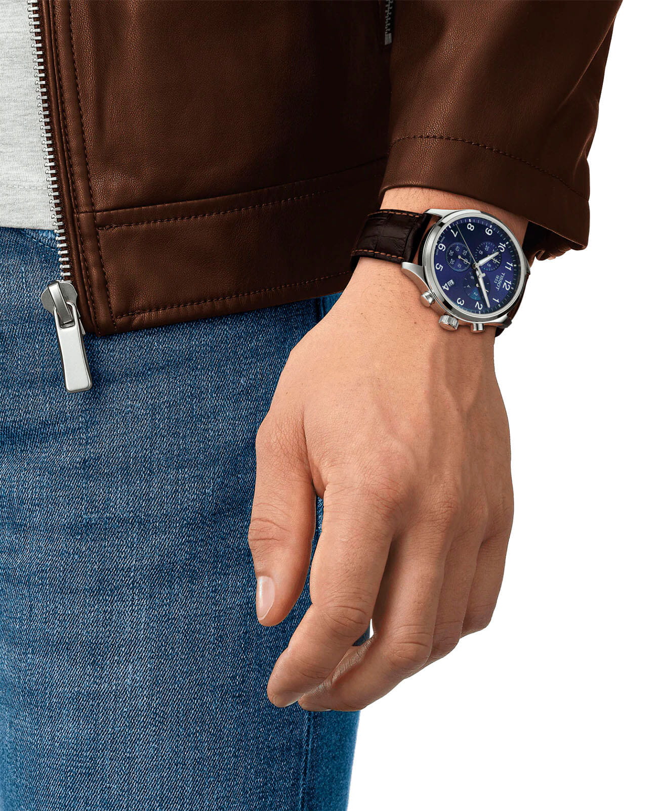 Мужские швейцарские часы из коллекции Chrono XL Classic представляют собой динамичный спортивный хронографХронографФункция позволяет измерять отрезки времени с особой точностью: часы, минуты, секунды. Верным признаком хронографа является наличие на циферблате 3 дополнительных окошек-счётчиков. с полезным функционалом.